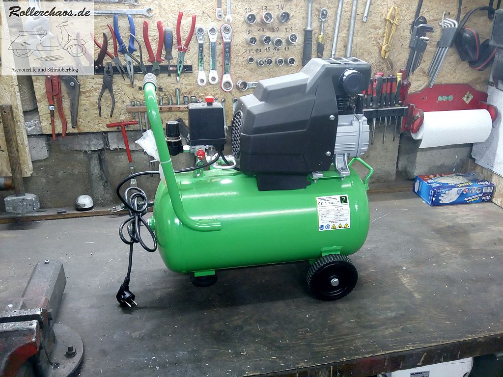 Sehr positiv ist, wie wenig Wasser im Kessel war. Der alte, öllose, Kompressor musste dauernd entwässert werden. Ganz offensichtlich hat sich der Umstieg auf den Ölkompressor gelohnt. Das Teil ist nicht nur erheblich leiser, sondern ganz allgemein weniger pflegebedürftig. Top!