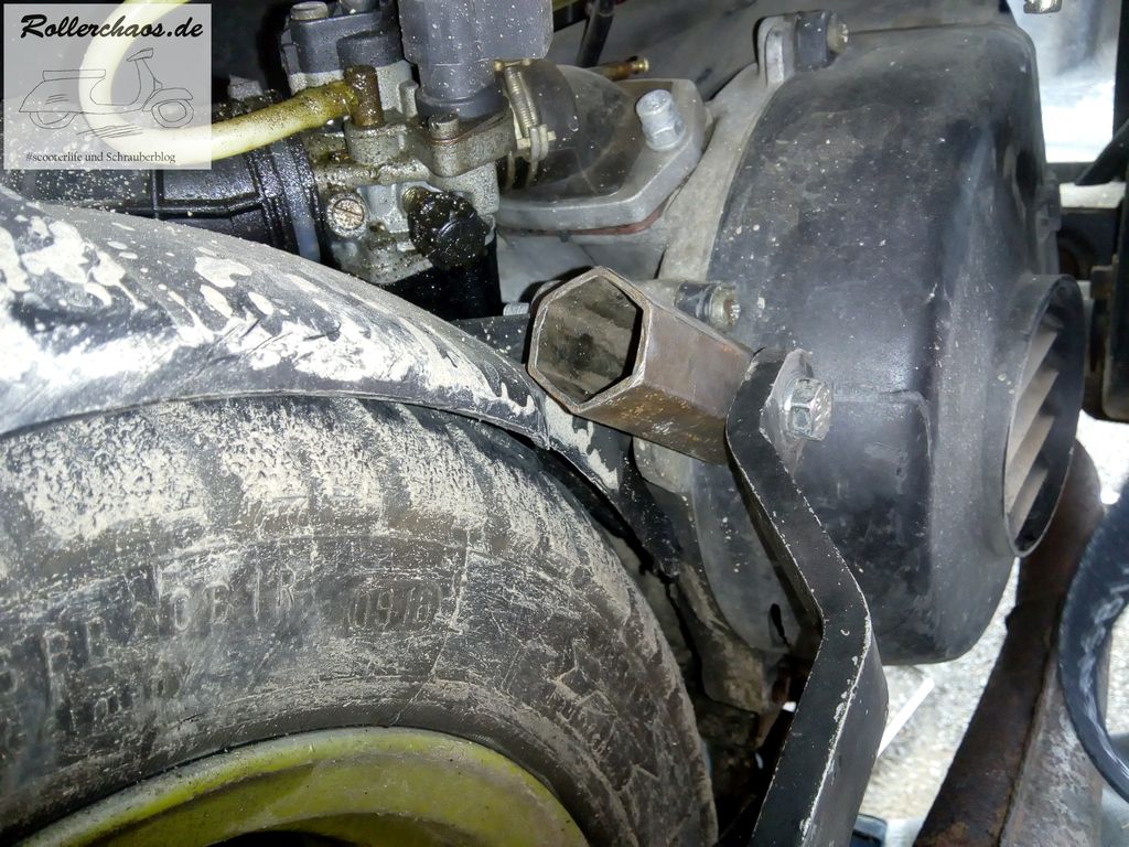 Dummerweise hatte ich aber nicht bedacht, das es zur Montage Distanzhülsen braucht. Diese hatte ich nicht dabei, weshalb der kleine Kerzenschlüssel aus dem Bordwerkzeug vorläufig einen Nebenjob hat.