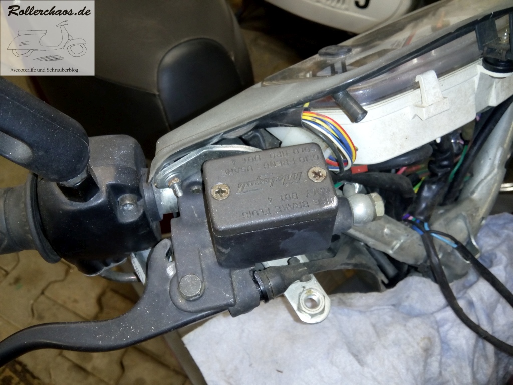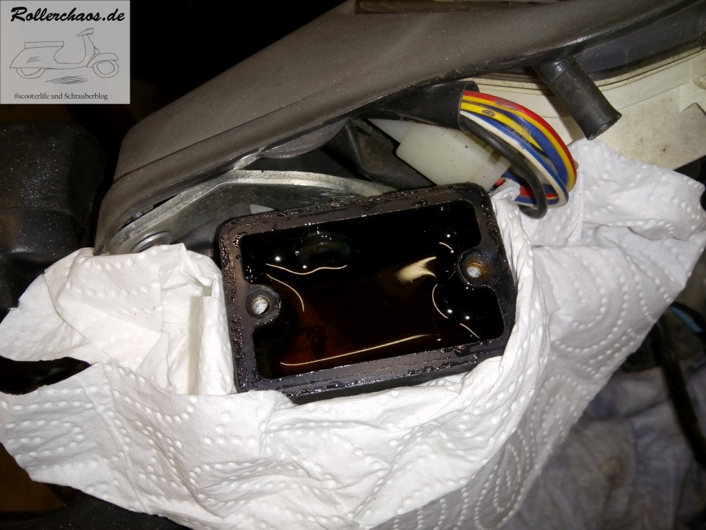 Die alte Bremsflüssigkeit hatte es aber natürlich trotzdem hinter sich, schwarze Pampe ist hier nicht das was man sehen will, aber der Wechsel ging problemlos und schnell über die Bühne. Allerdings bedeutet das nicht, dass der Roller damit schon fertig war.