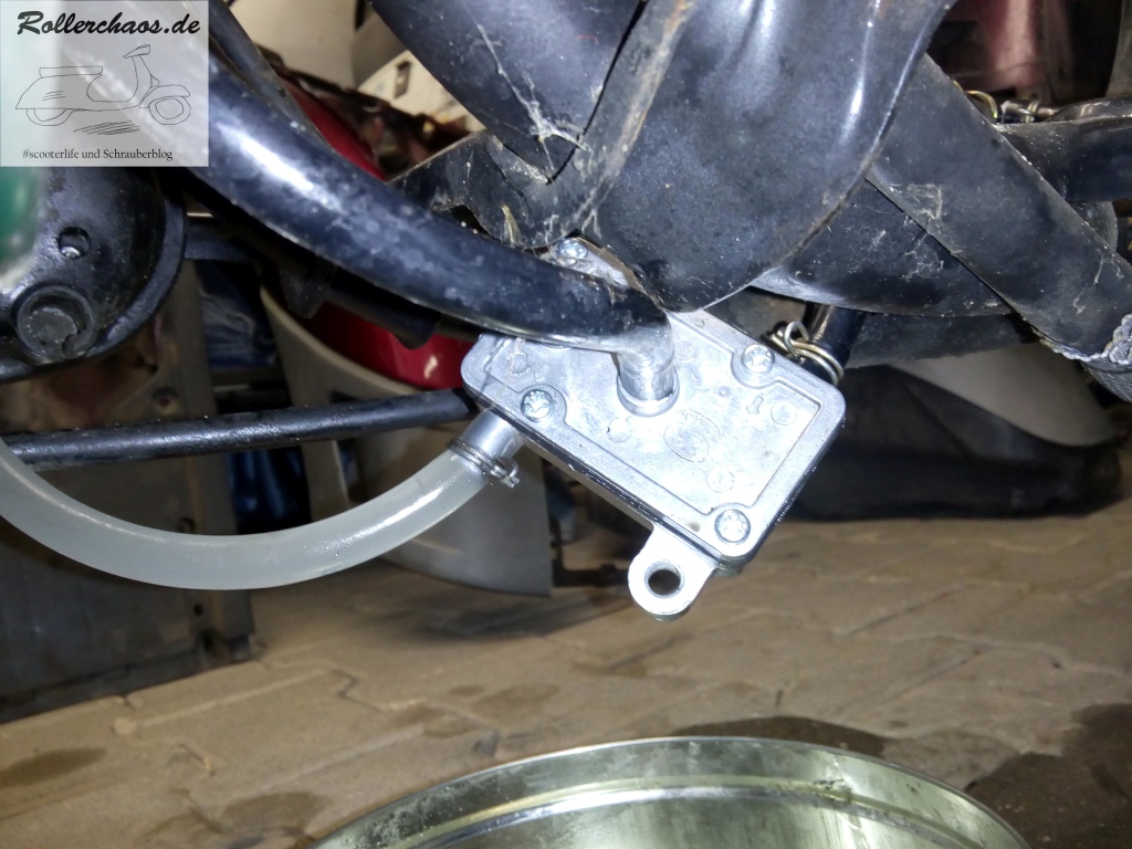 Tipp zur Bedienung: Der Gummiadapter passt bei den meisten Rollerbremsen nicht gescheit auf den Nippel, darum setze ich dann direkt den Schlauch an. Normalerweise dauert ein Bremsflüssigkeitswechsel damit keine 10min.