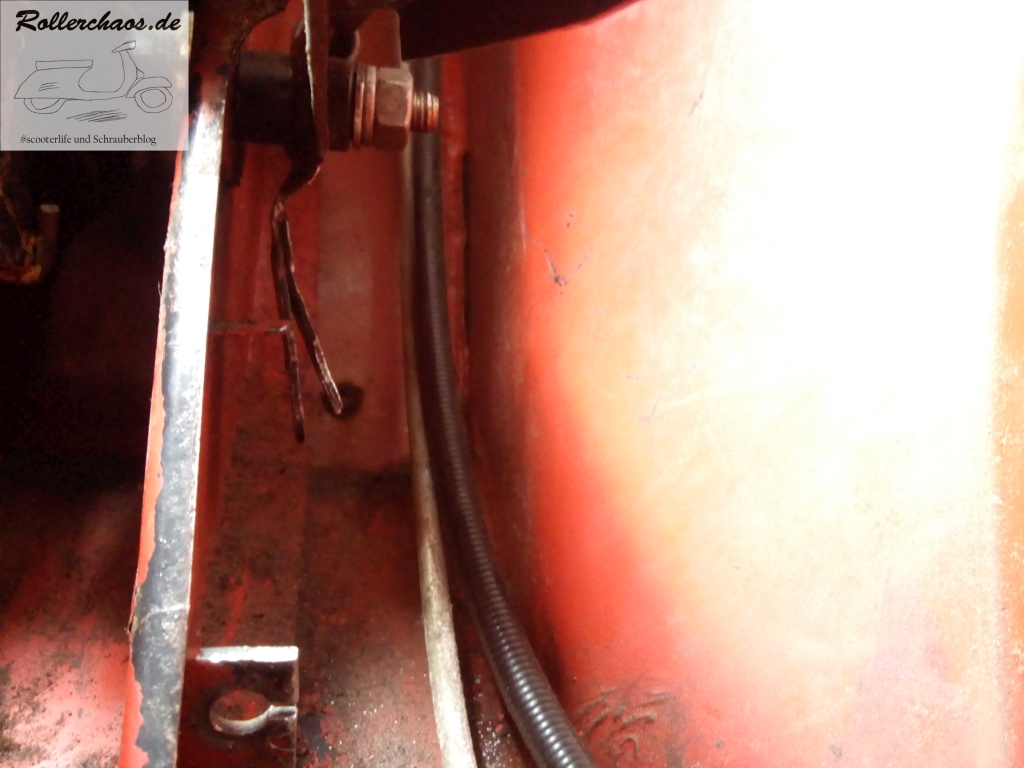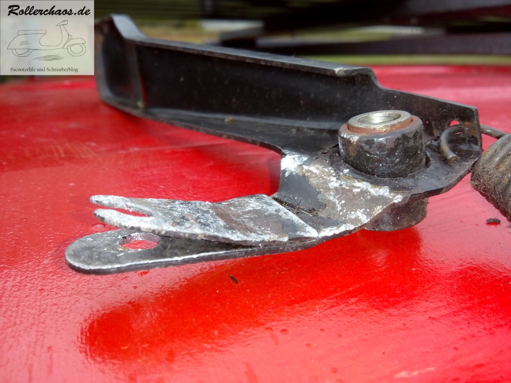 Den Musikgenuss störte allerdings noch ein nerviges Scheppern. Auch das so eine Kleinigkeit, die ich nun schon längere Zeit verschleppe. Quelle des Geräusches war die Schaltkulisse, die ohnehin etwas Zuwendung brauchte. Meine "Schaltsocke" hing nur noch an einem halben Faden.