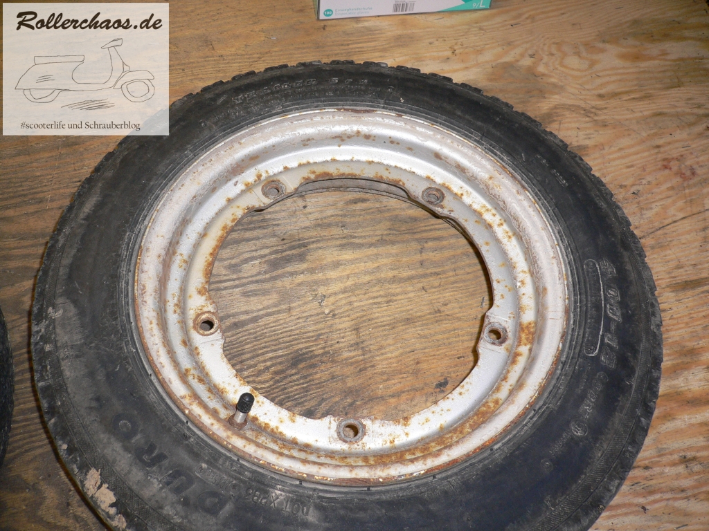 Die alten Räder habe ich heute noch zum Reifenhändler gemacht, dann kann dieser die neuen Reifen aufziehen sobald sie geliefert wurden. Allerdings waren die Felgen doch arg gammelig geworden.