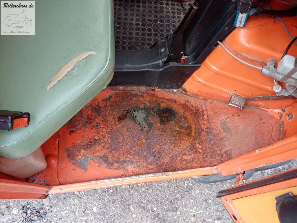 Turin ist nicht so fürchterlich weit vom Meer weg, aber ich glaube, dass Winterdienst mit Schneeschieber und Salzstreuer da eher ihren Teil dazu beigetragen haben. Die Kabine ist aber, typisch, nur rechts wirklich faul. Das haben nahezu alle Fuffis, einfach weil die Hauptbremszylinder notorisch undicht sind und die Bremsflüssigkeit in den Fußraum läuft.