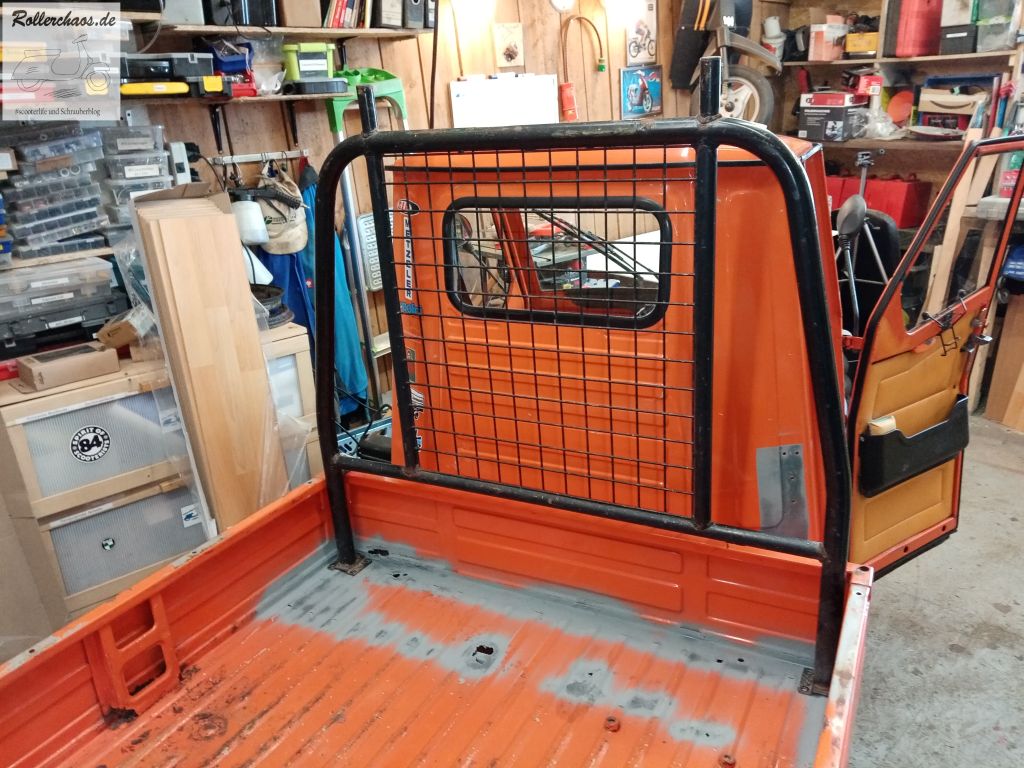 Während das trocknete habe ich angefangen, den Kabinenschutzbügel auf Tartaruga zu setzen. Das Teil stammt von einer anderen Ape, auf meiner war bisher ein Sonderaufbau drauf.
