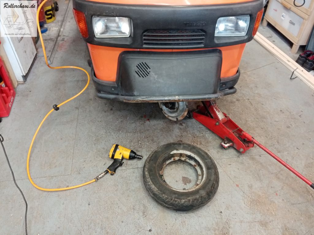 Der Rost ist bei diesem Projekt der Hauptgegner. Auch bei den Felgen, von denen eine so schlecht war, dass ich sie direkt entsorgt habe. Zum Glück liegen Dinge wie Apefelgen bei mir ja auf Halde.
