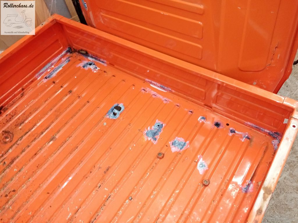 Ähnlich sieht es auch mit der Pritsche und dem Mittelholm aus. Die kritischen Bereiche sind in Ordnung, durchrostet ist lediglich das Deckblech. Eine positive Überraschung, ich bin eigentlich davon ausgegangen, dass da mehr ist.