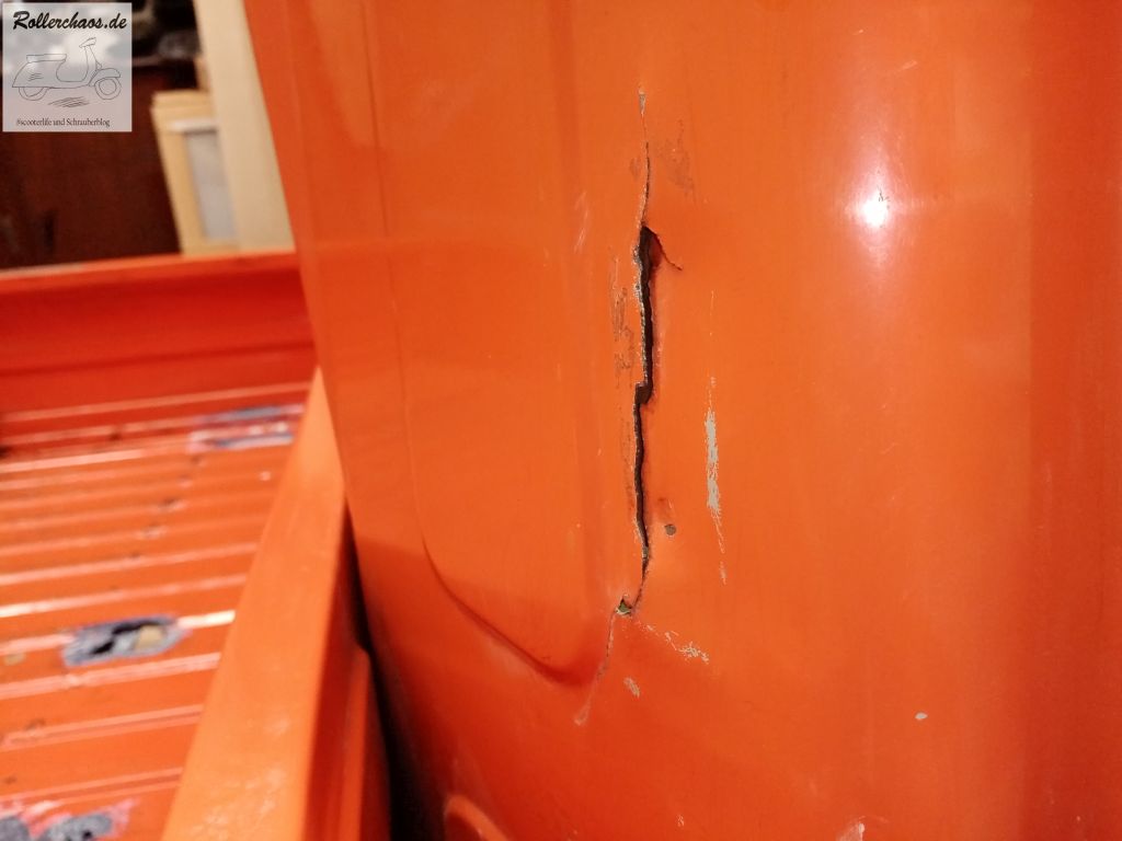 Diese bestand darin, den Riss zunächst soweit wie möglich zu egalisieren und das Blech wieder in seine eigentliche Form zu bringen.
