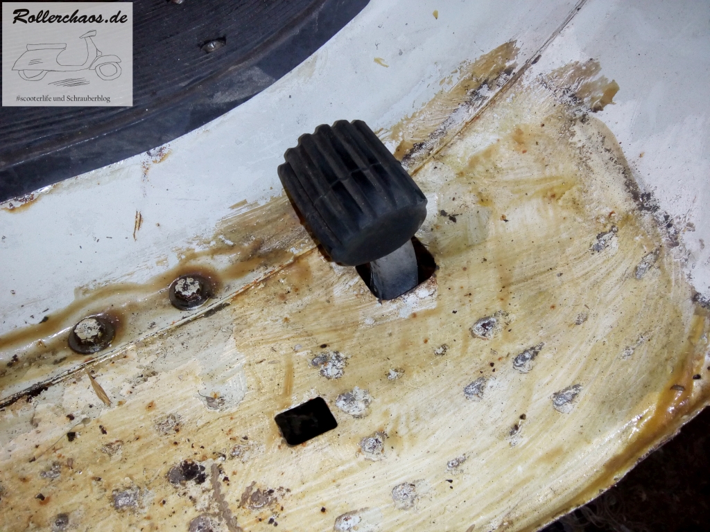 Unbedingt beheben muss ich jedoch ein klassisches Smalframe-Leiden. Das feststeckende Bremspedal ist ein Problem, dass Vespafahrern nur zu vertraut sein dürfte.