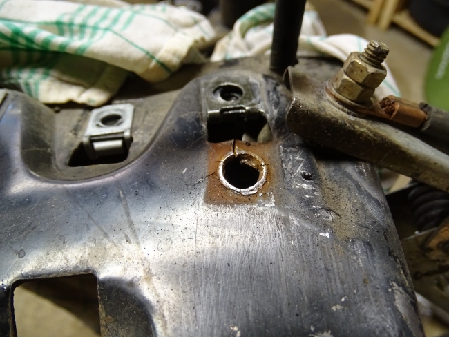 Nach dem Lösen der Kontermuttern zeigte sich dann das ganze Maß der Verwüstung. Das Kugellager des oberen Lenkkopflagerteils hatte es definitiv hinter sich.
