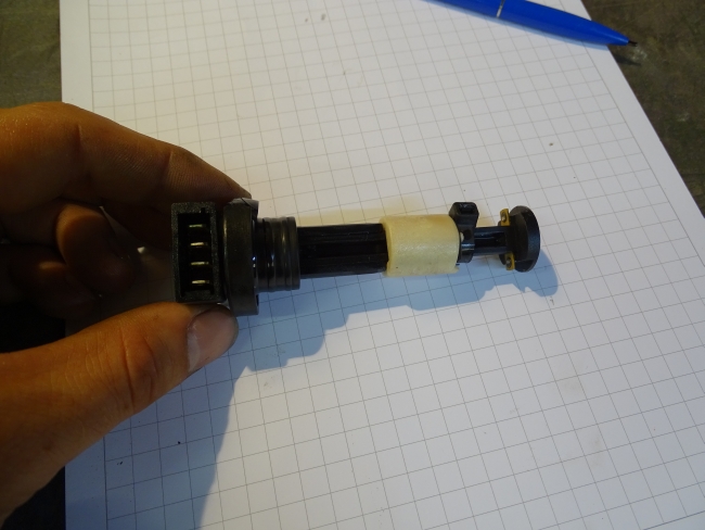 Der Stalker verfügt über diesen vierpoligen Stecker. Ohne den Signalgeber lässt sich bei diesem Fahrzeug der Motor nicht mehr starten! Dies kann umgangen werden, indem die Kontakte am Stecker überbrückt werden oder (was ich für die bessere Lösung halte, weil der Kabelbaum nicht aufgeschnitten werden muss) durch "Blindlegen" des Gebers. Dieser ist nur in den Öltankt eingesteckt und kann einfach herausgezogen werden.