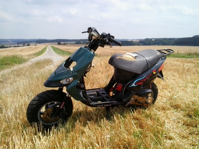Ich hatte damals RIESEN Glück das es ohne Sturz abging. Grund dafür war eine andere Schwachstelle, die es bei den Fuffis jedoch nicht gibt: das Getriebe der 125er Zweitakter ist unterdimensioniert und kann bei ganz harten Schlägen aufgeben, was damals passiert ist. Das Getriebe hats zerrissen bevor die (relativ träge) Fliehkraftkupplung aufgemacht hat, letztendlich war ich für den Getriebezermoscher dankbar, denn der hat das Hinterrad befreit und ich bin nicht abgeflogen sondern hab "nur" den Reifen "plattgebremst".
