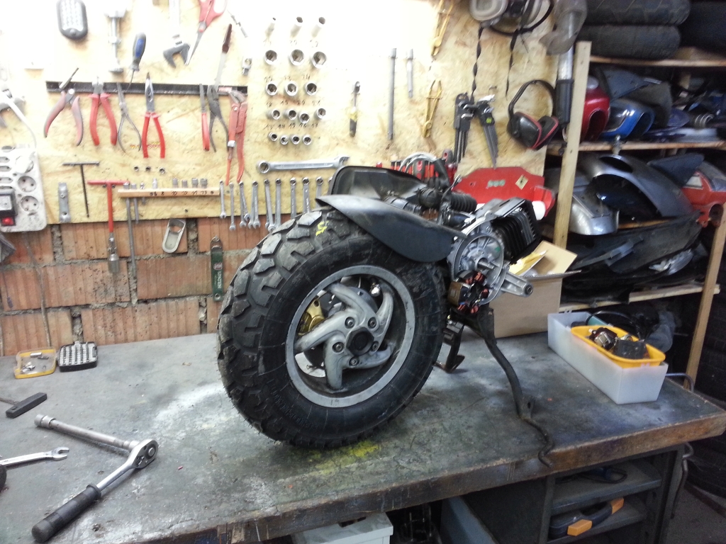 Wir sind ja bemüht so gut es geht den Roller vor der Tour in Schuss zu haben. Gerade auf der nächsten mit 8k km werden neue Reifen und Antriebriemen etc gebraucht.