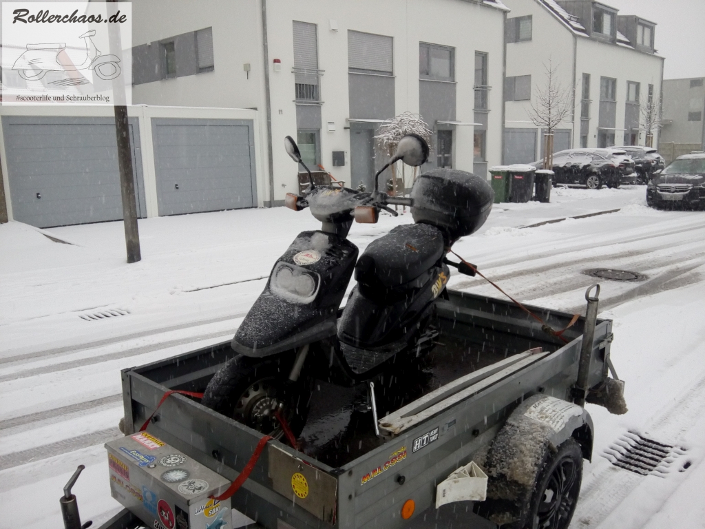 Bis dahin kann das Auto in der Tiefgarage abtauen und der Roller noch etwas einschneien.