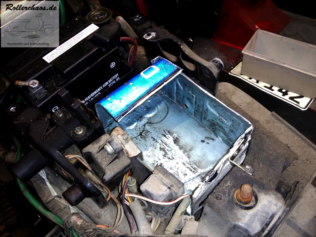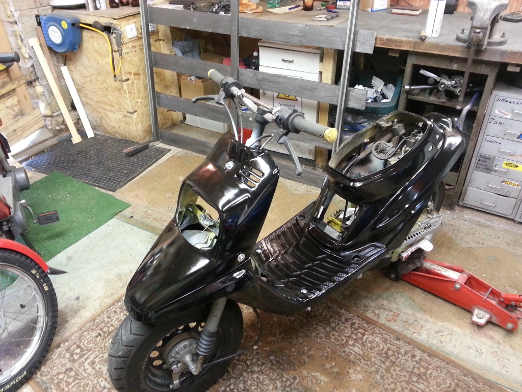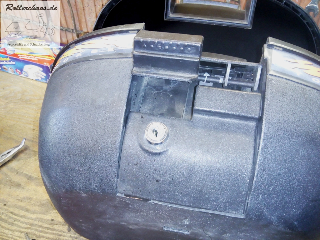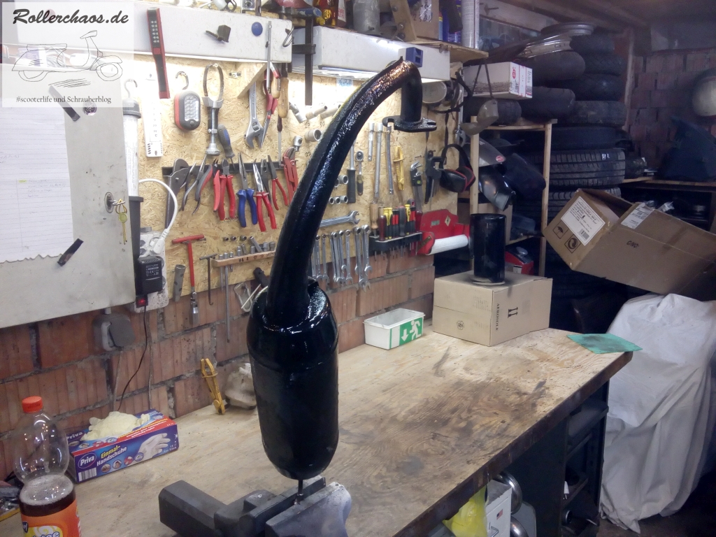 Kosmetisch machen die schwarz lackierten Teile der äußeren Verkleidung schon einiges her. Die Bodenwanne, das Trittbrett und das Beinschild werde ich ebenfalls glänzend schwarz lackieren, einfach weil diese Farbe da ist. Ich habe mitlerweile ein ziemlich deutliches Konzept für diesen Roller in der Birne. Vor allem habe ich dafür praktisch alles da. Technisch fehlt natürlich das meiste, darum werde ich wohl diesmal erst die Optik und dann die Technik des Rollers machen. Dieses Vorgehen wiederspricht zwar eigentlich meinen Grundsätzen, ist hier aber der einfachere Weg.