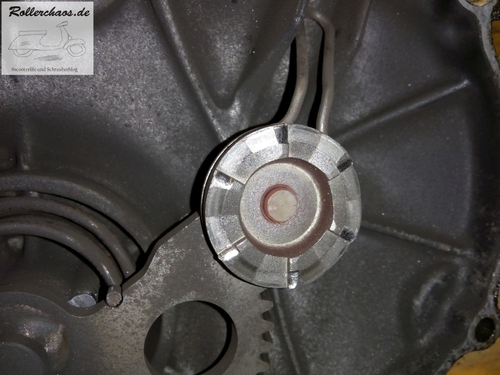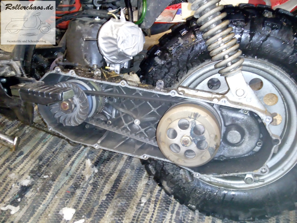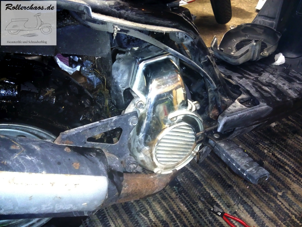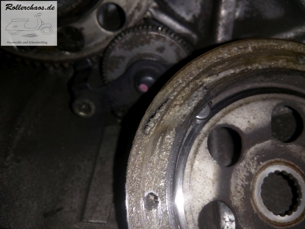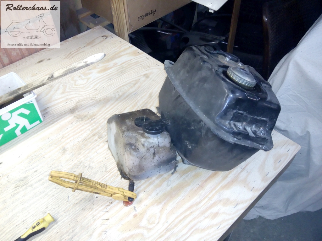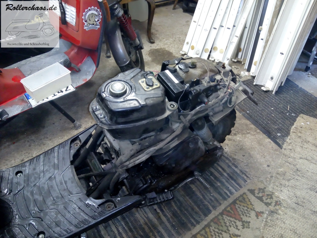Die Schwimmerkammer stand mit Zweitaktöl voll. Kein Wunder, dass der Roller nicht ansprang. Die Erklärung dafür ist vermutlich eine defekte Ölpumpe, aber diese wollte ich sowieso rauswerfen.