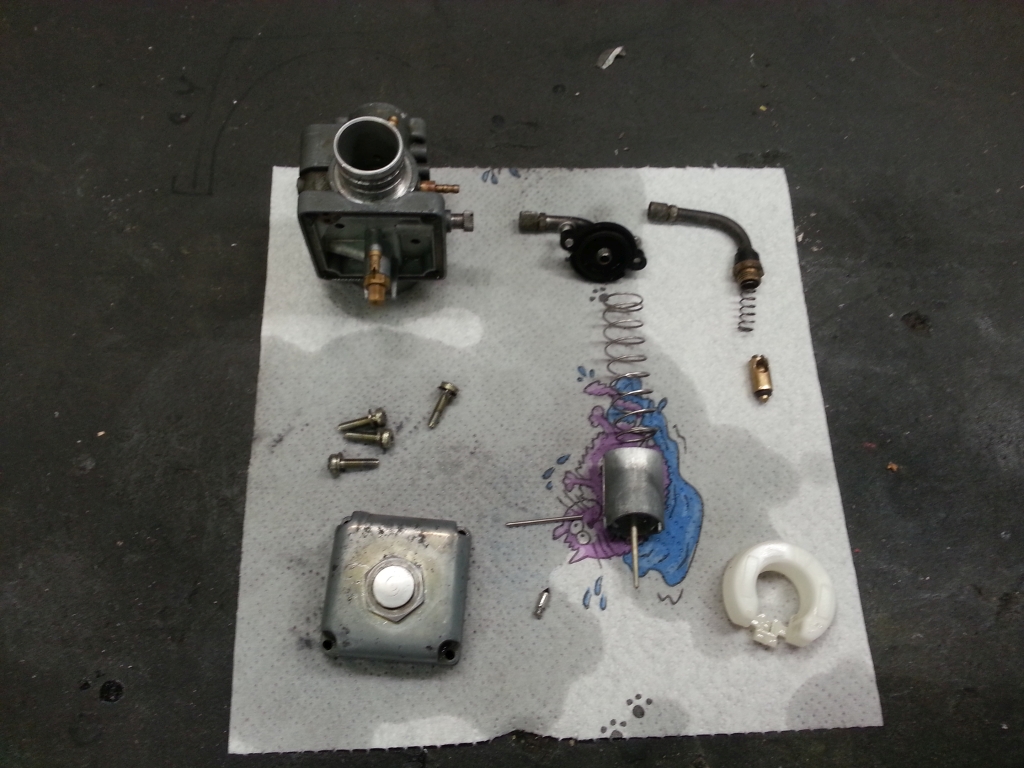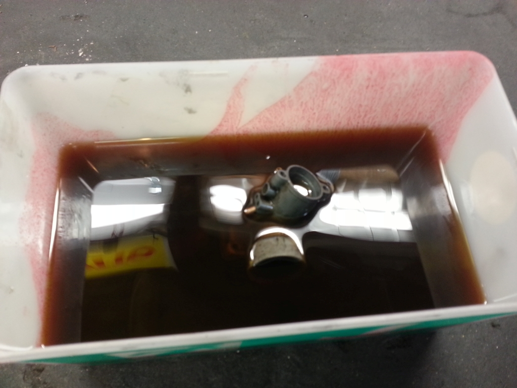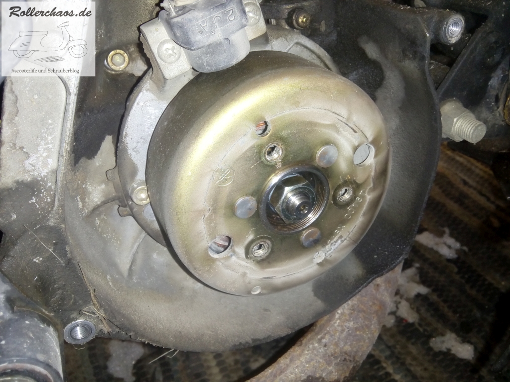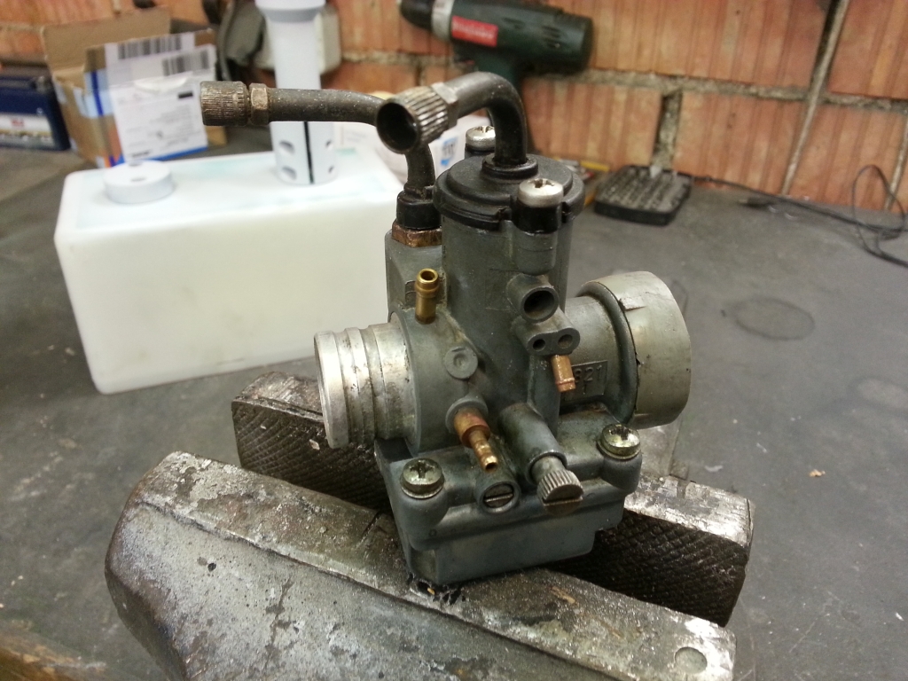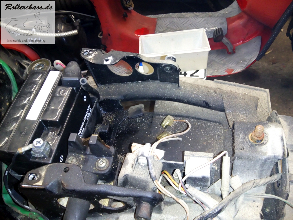 Die Schwimmerkammer stand mit Zweitaktöl voll. Kein Wunder, dass der Roller nicht ansprang. Die Erklärung dafür ist vermutlich eine defekte Ölpumpe, aber diese wollte ich sowieso rauswerfen.