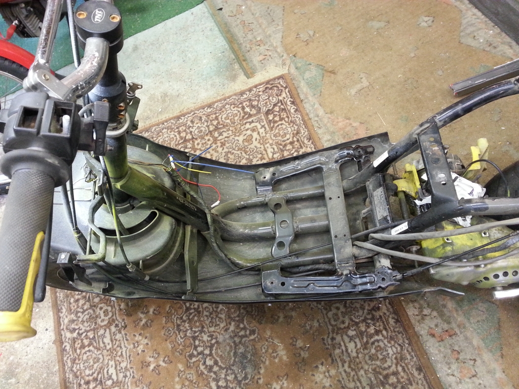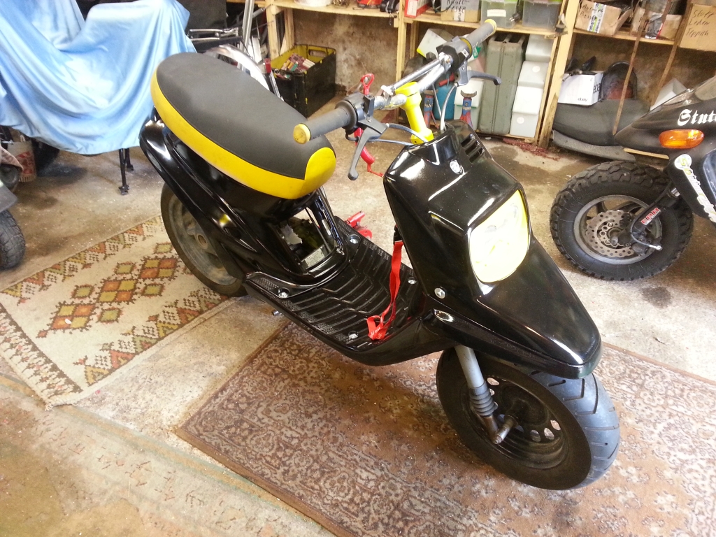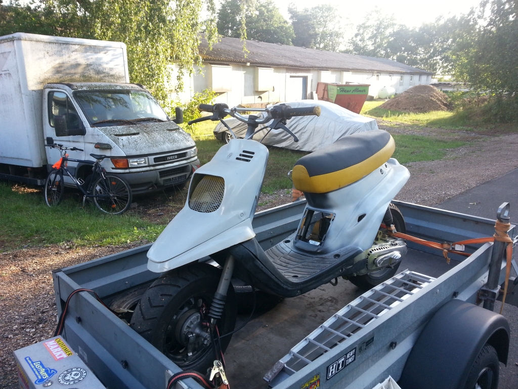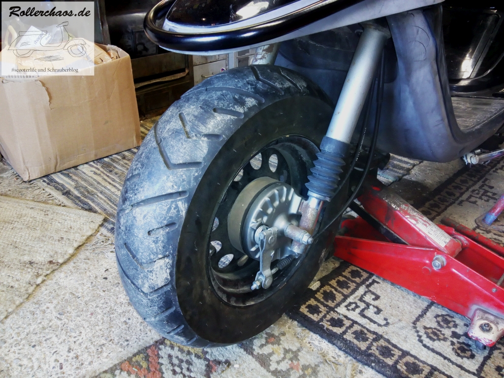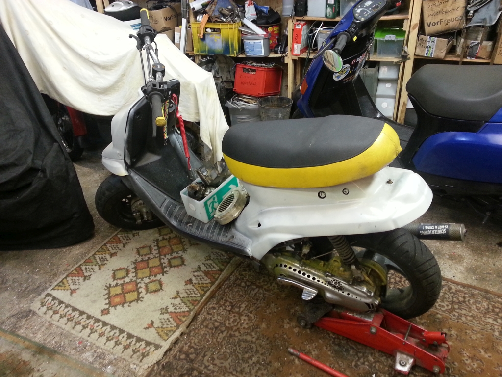 Vor allem wenn man bedenkt, dass das komplette Projekt bisher nur den sehr geringen Kaufpreis der Basisleiche gekostet hat. Ist ja alles Zeug das ich noch rumliegen hatte, bzw. die Teilespende von Michael. Gut, für den Motor muss ich jetzt dann wohl nochmal gut einen Hunderter ausgeben, aber wenn das klappt, dann wird das ein relativ billiger und sehr lustiger Spaßroller. Ich hab jetzt auch noch ein Hinterrad geschenkt bekommen, ob das wieder rein kommt oder ob ich die SR-Felge behalte hängt dann nur davon ab, für welche Reifengröße es die besseren "Ackerstollen" gibt 😉