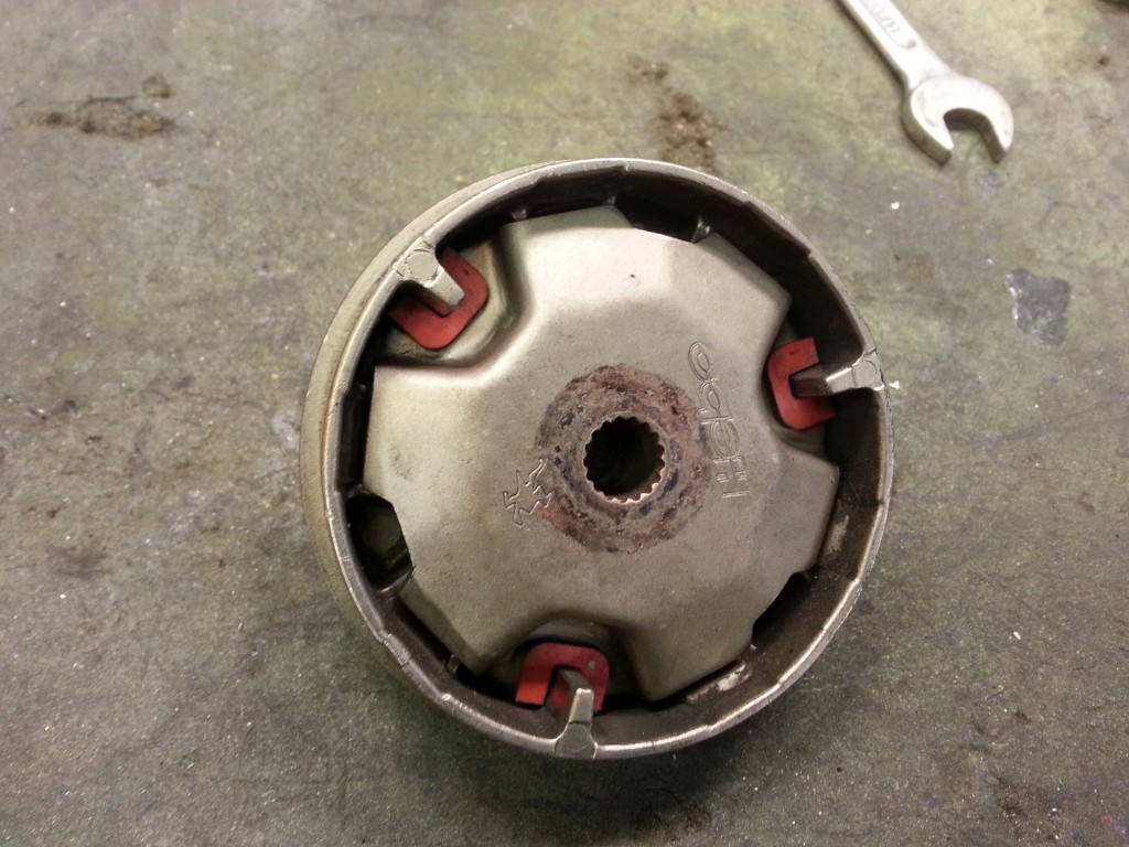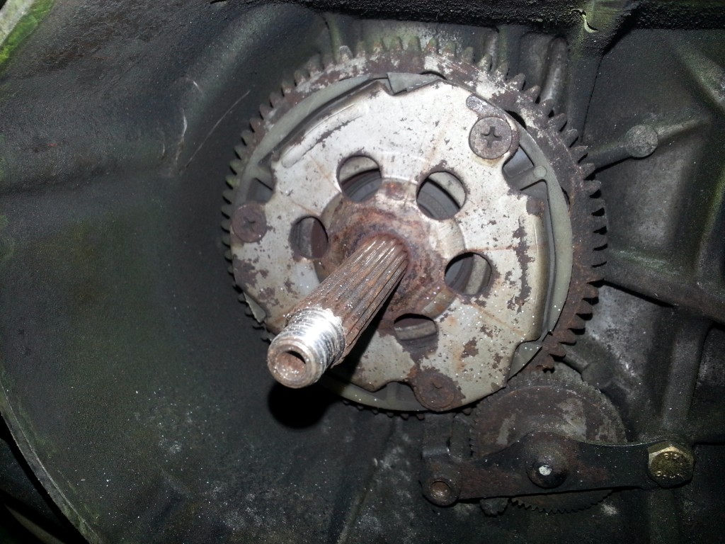 Denn den hier lauernden Horror hatte ich schon beim Kauf gesehen. Die Antriebsseitige Aufnahme war nur unter einer dicken Kruste aus Ölschmier und Dreck versteckt, ansonsten aber in Ordnung.