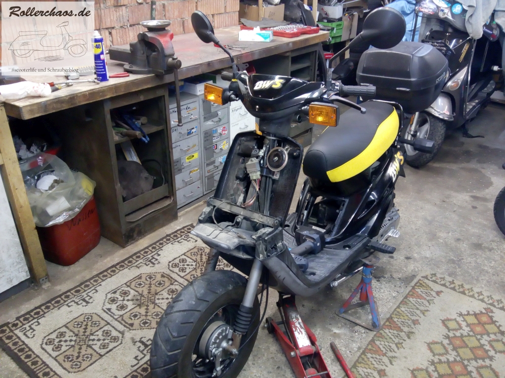 Generell finde ich es am BWS katastrophal an den Motor oder alleine nur an die Zündkerze zu kommen, ziemlich nervig wenn dazu immer erstmal der Tank und der Spritzschutz runter muss, echt aufwendig.Beim BWS ist es echt am besten man dichtet alles sauber neu ab damit man an den Motor gar nicht mehr ran muss.