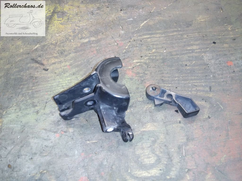 Schwierig ist dabei vor allem die Repartur des Chokehebels. Diese ist normalerweise an einem angegossenen Stift an der Lenkerarmatur befestigt. Dieser Stift war komplett abgebrochen.