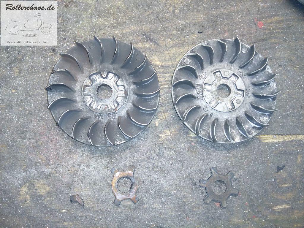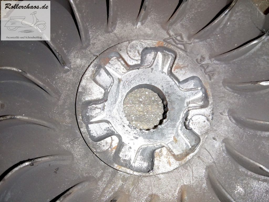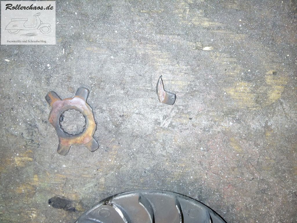 Als kleine Hilfe habe ich dem Roller heute darum leichtere Fliehgewichte verpasst. Eine gute Idee, denn so habe ich noch rechtzeitig mitbekommen, dass sich die Sternscheibe in der Variomatik aufgelöst hatte.