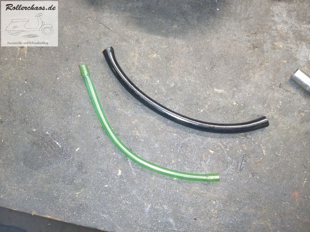 Viel Arbeit um an zwei kleine Schlauchstücke zu kommen. Aber es hilft nichts.