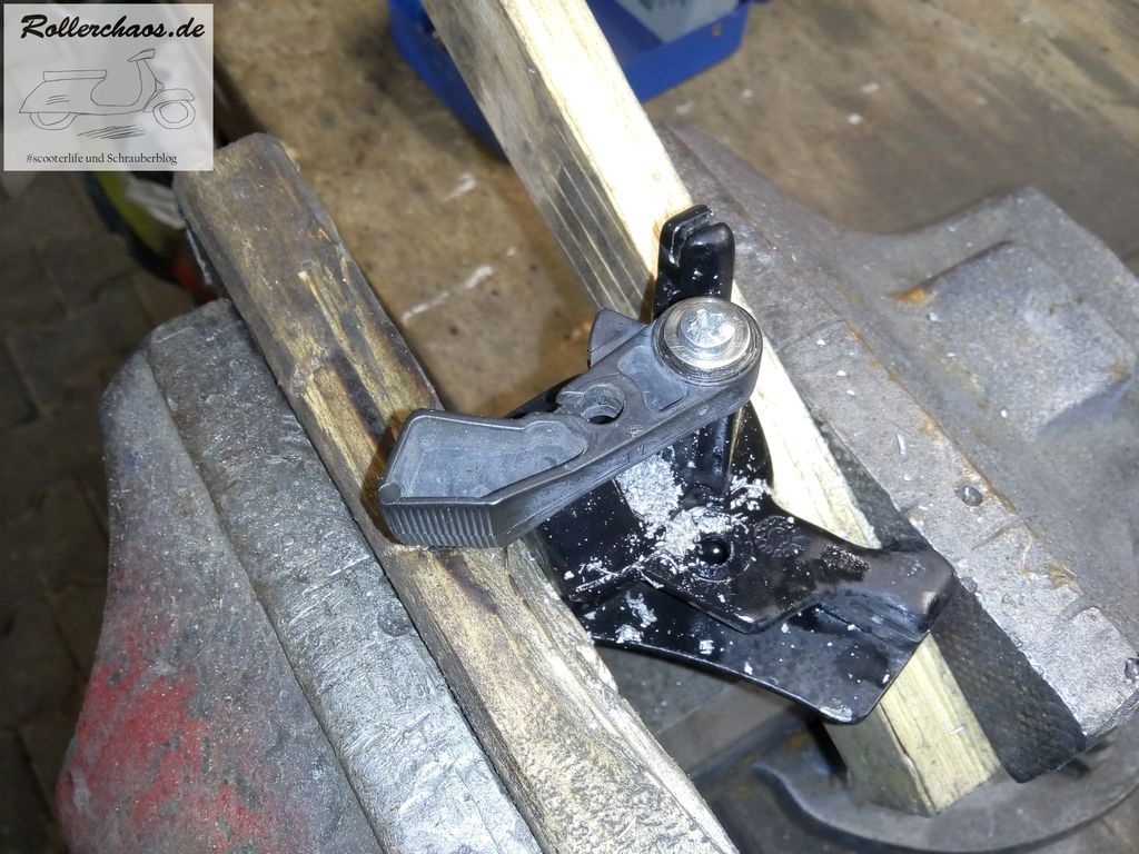 Eine M4-Schraube ist an dieser Stelle völlig ausreichend, denn große Kräfte wirken hier ja eigentlich nicht (außer man legt den Roller auf dem Chokehebel ab).