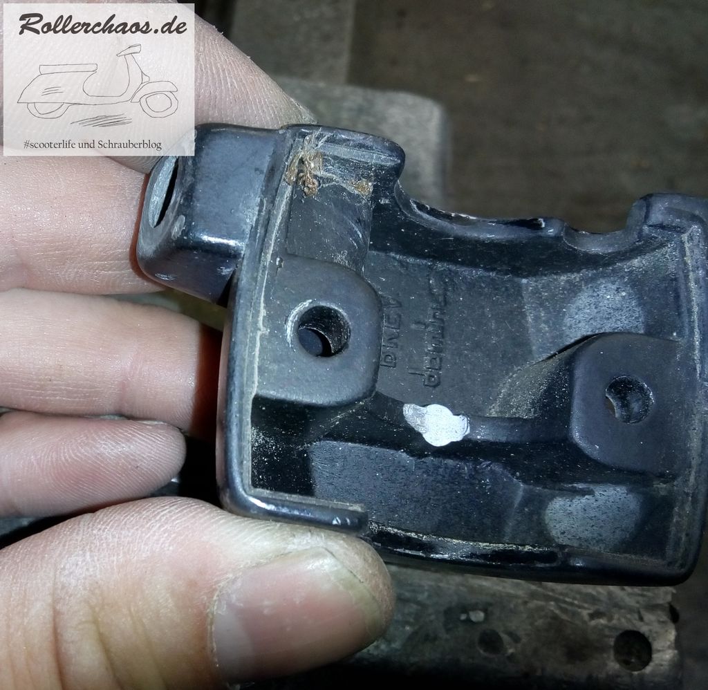 Ebenso war auch die Zentriernase für die Lenkerarmatur weggebrochen. Eigentlich ist das Teil so ein Fall für den Schrott. Neu lieferbar ist aber nur noch die Variante für die etwas jüngeren BW's, Gebrauchtteil sind relativ teuer. Also erstmal eine klassische Reparatur versuchen.