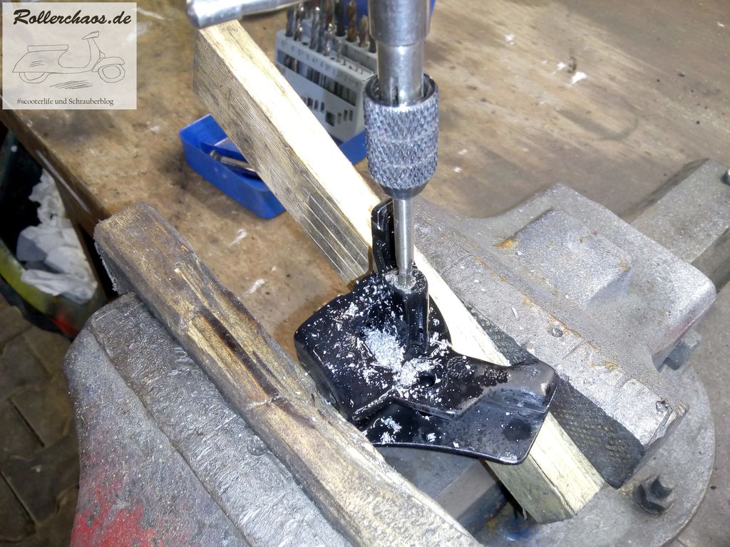 Für den Hebel ließ sich dann auch relativ problemlos ein Kernloch bohren und ein 4mm-Gewinde schneiden.