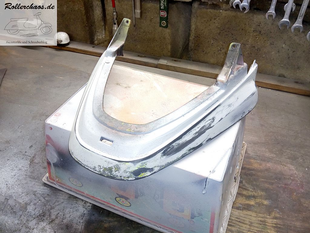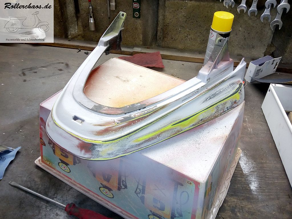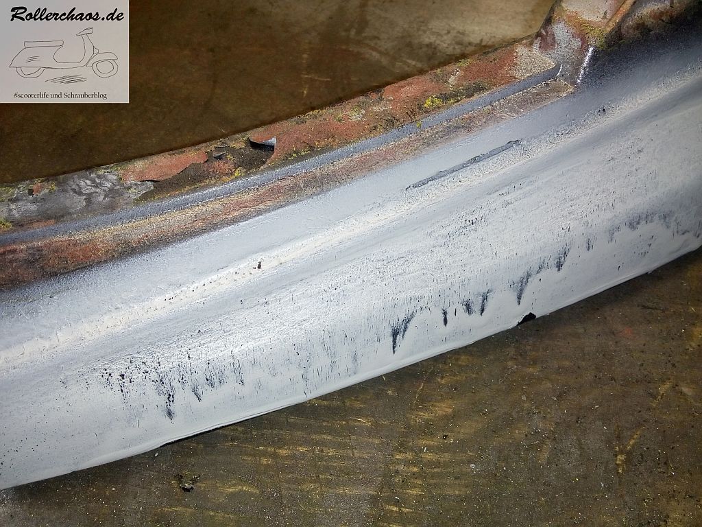 Das wird natürlich nichts gescheites, aber es bildet einen Untergrund, von dem ich weiß, dass meine Standardgrundierung darauf hält. Zumindest wenn das Zeug nicht auch hoch kommt, aber das muss sich bis nächstes Mal zeigen.
