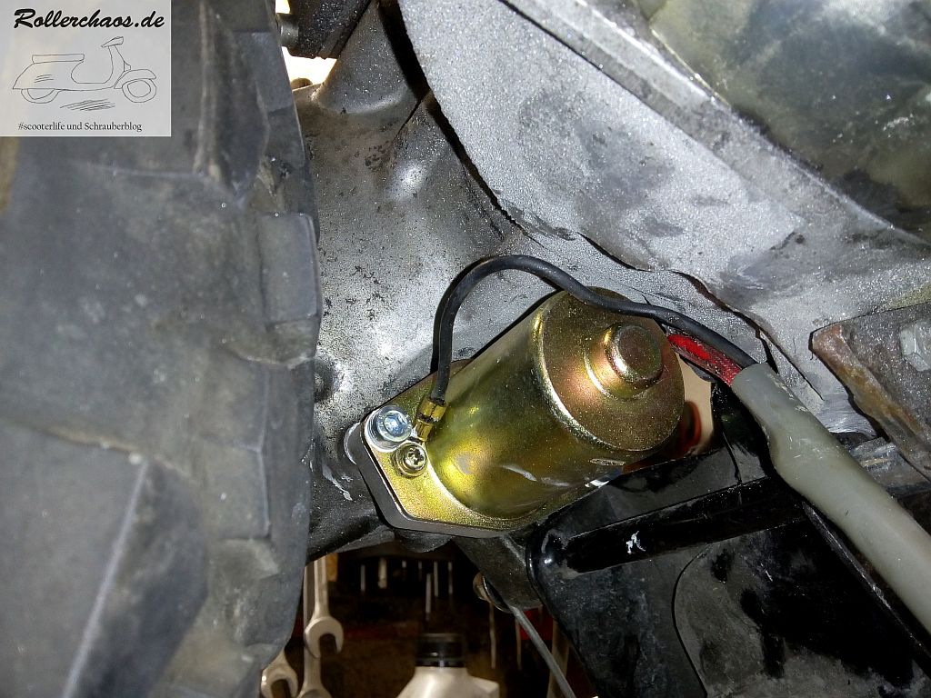 Beim alten Neos hatte ich kurz vor dem Totalausfall noch einen fabrikneuen Anlasser eingebaut. Dieses Teil zog nun in den BW's ein. Der originale Anlasser war nicht mehr wirklich gut und wenn schon ein Neuteil rumliegt, dann wäre es ja unsinnig es nicht zu verwenden.