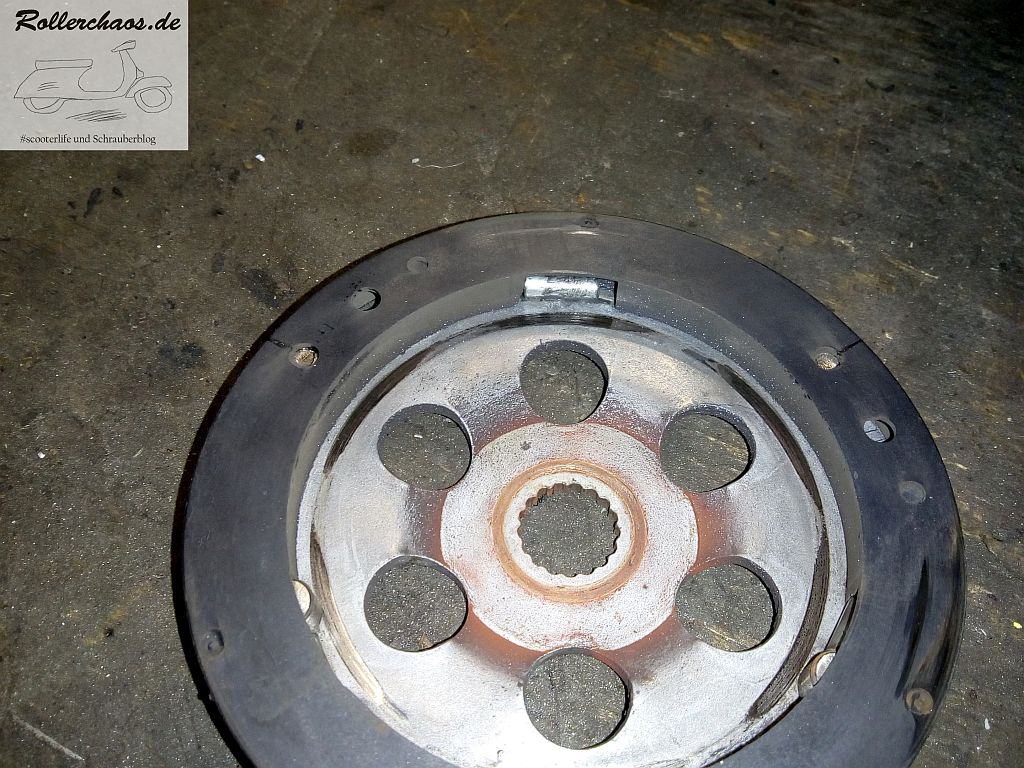 Der WeDi auf der Antriebsseite lieferte anschließend einen zähen Kampf. Das Teil war nicht nur steinhart, sondern ganz offenbar auf der Kurbelwelle festgerostet. Wohl eine folge der langen Standzeit, die der Roller zwischenzeitlich hinter sich hat.