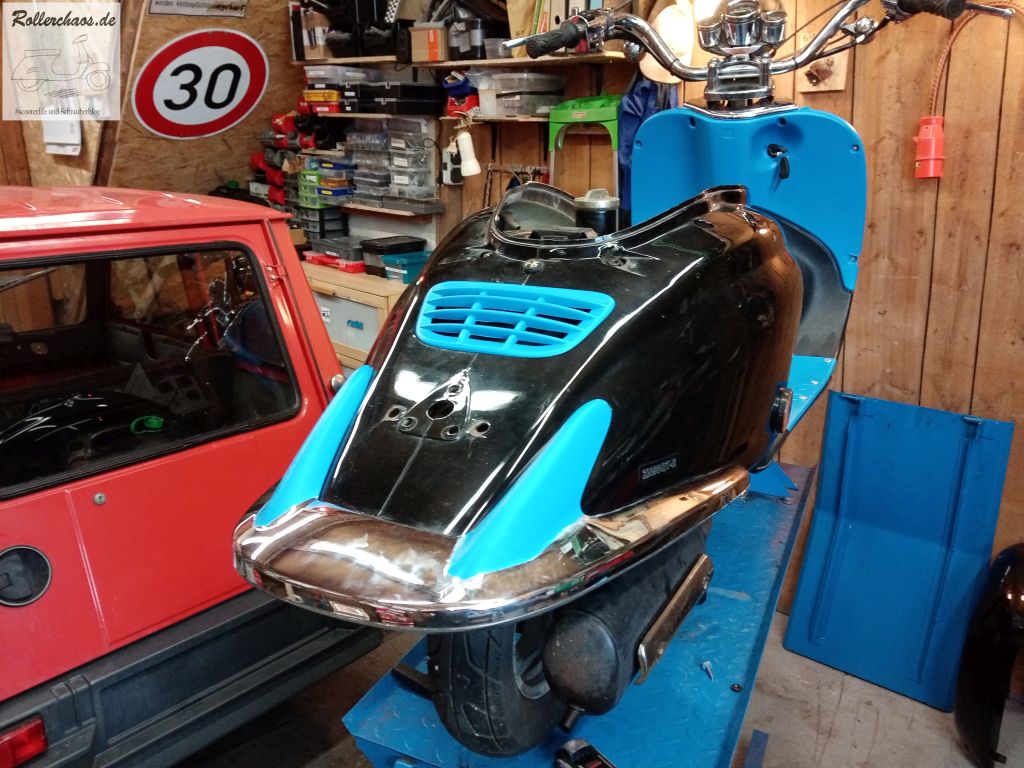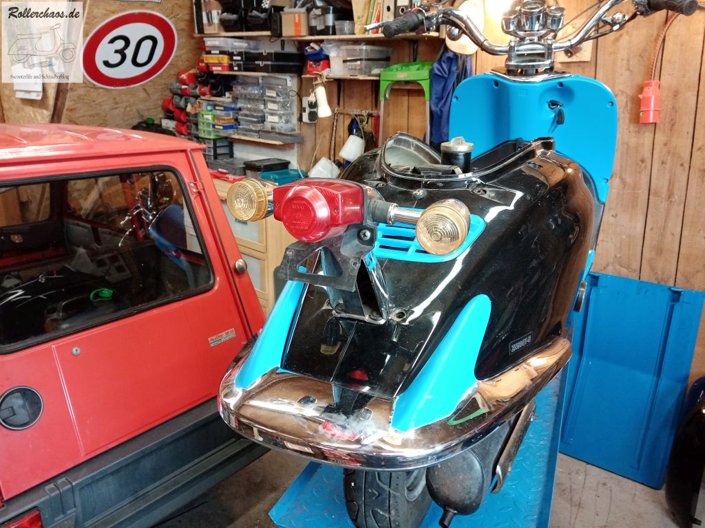 Das sind eben all jene Dinge, die dann noch nebenbei erledigt werden können. Grundsätzlich mal ist es ein funktionierender Roller, der dann zum Saisonstart wieder raus darf. So ist zumindest der Plan.