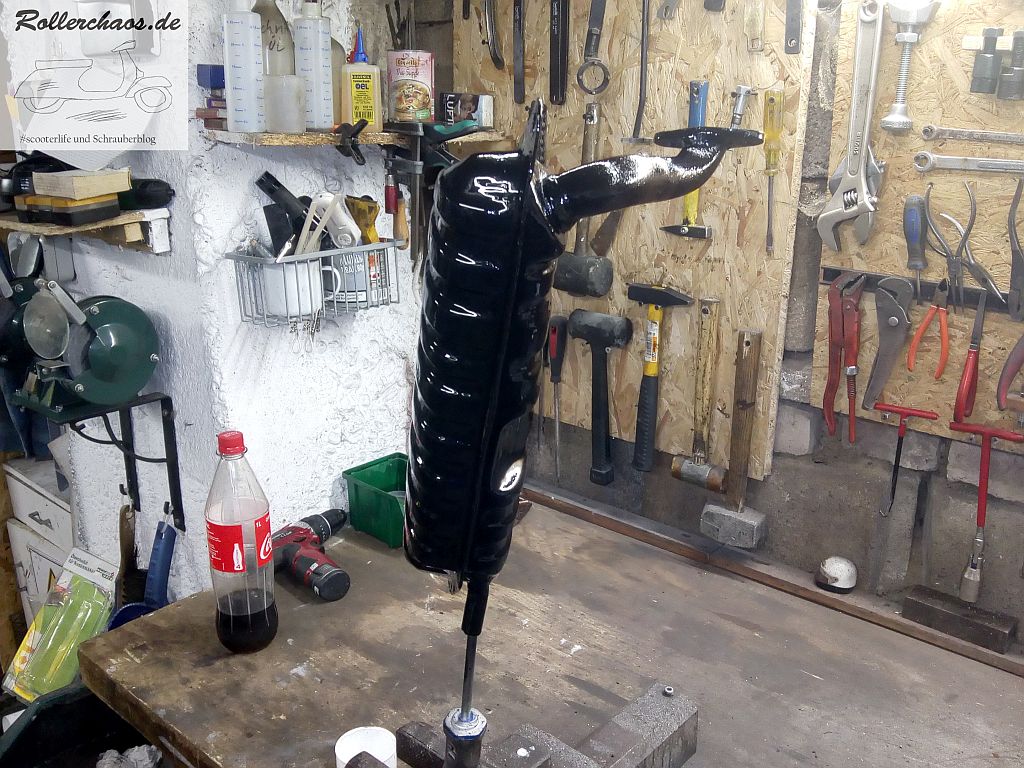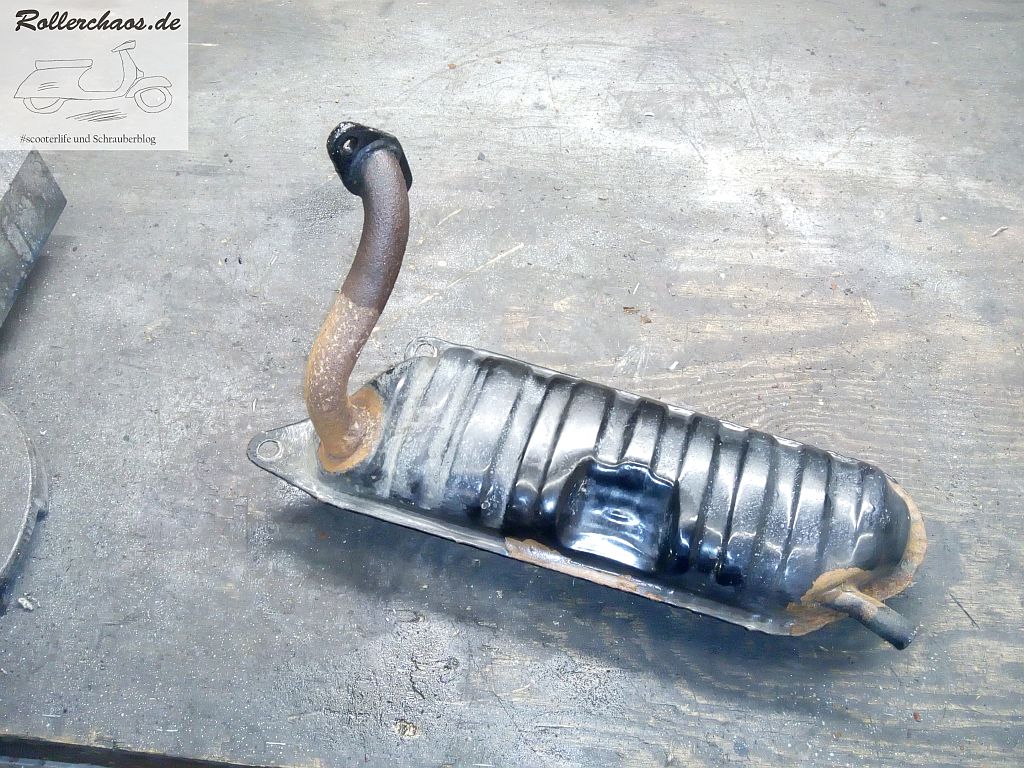 Zum Schluss bekam der Auspuff, der bis auf etwas Oberflächenrost sehr gut erhalten ist, noch etwas Farbe.