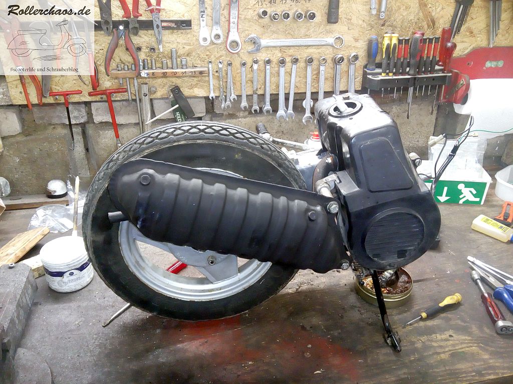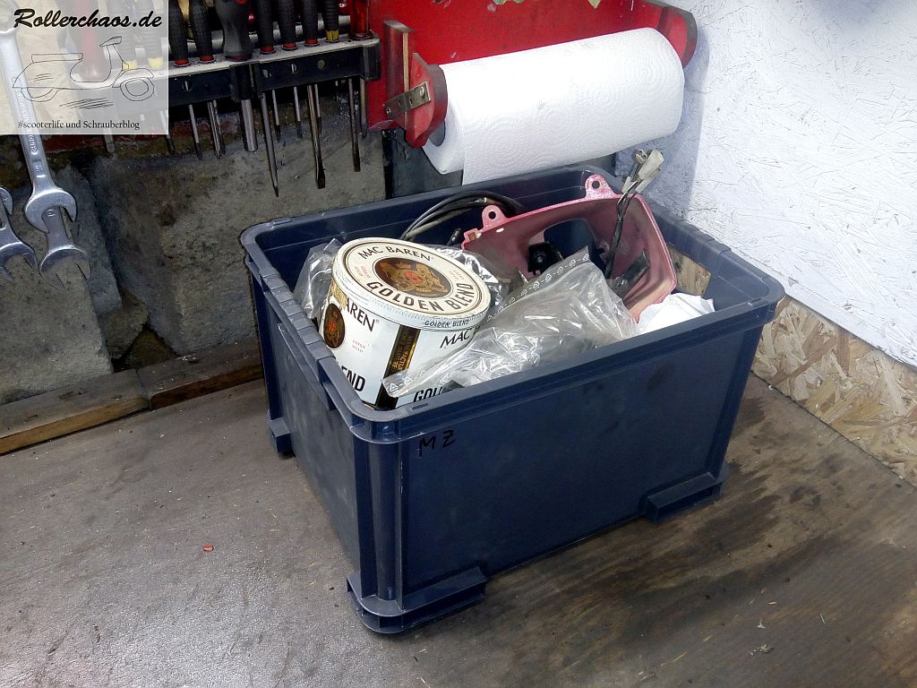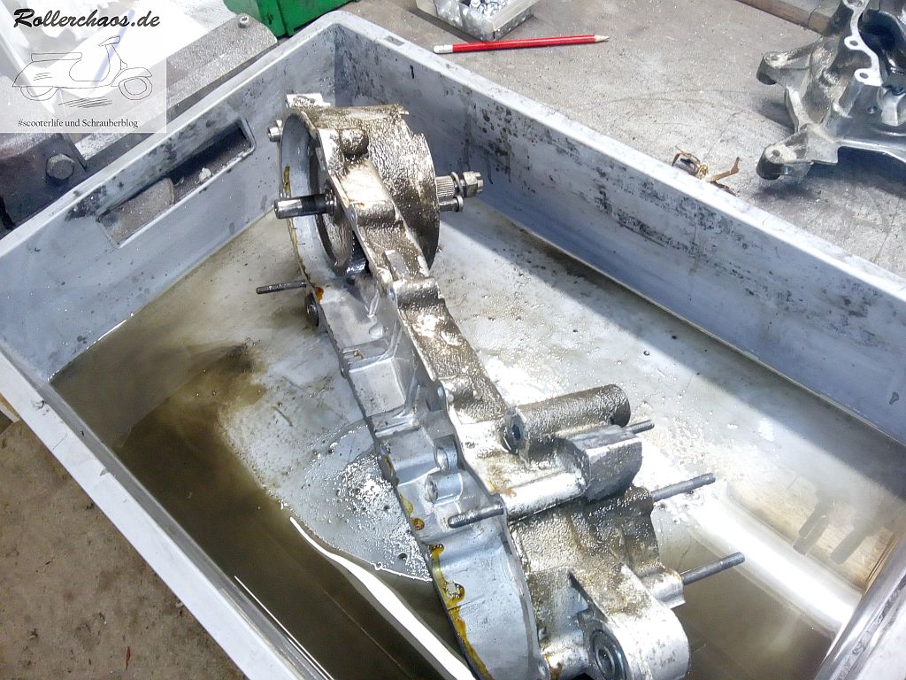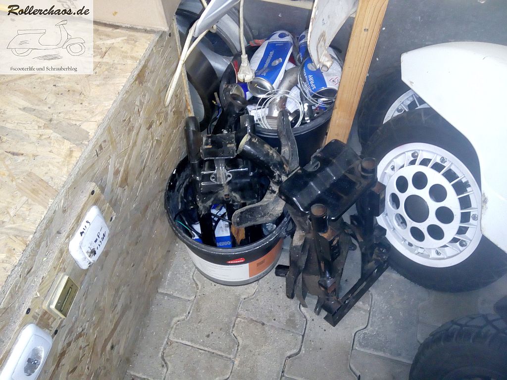Dieses Teil darf jetzt erstmal im Dieselbad einweichen, denn es ist furchtbar dreckig. Außerdem ging es dem Rollerrest aus Platzgründen gleich an den Kragen.