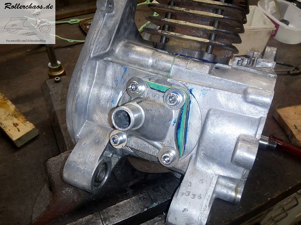 Anschrauben ging problemlos und es hält. Dank reichlich Dichtmasse sollte das auch dicht sein. Allerdings läuft der Motor noch immer nicht. Es scheint, als würde er nicht ansaugen und/oder überströmen. Was das genau ist muss ich noch feststellen, aber dafür fehlte dann heute wirklich die Zeit. Immerhin die Sorgen um die Ersatzteilversorgung sind erstmal erledigt.