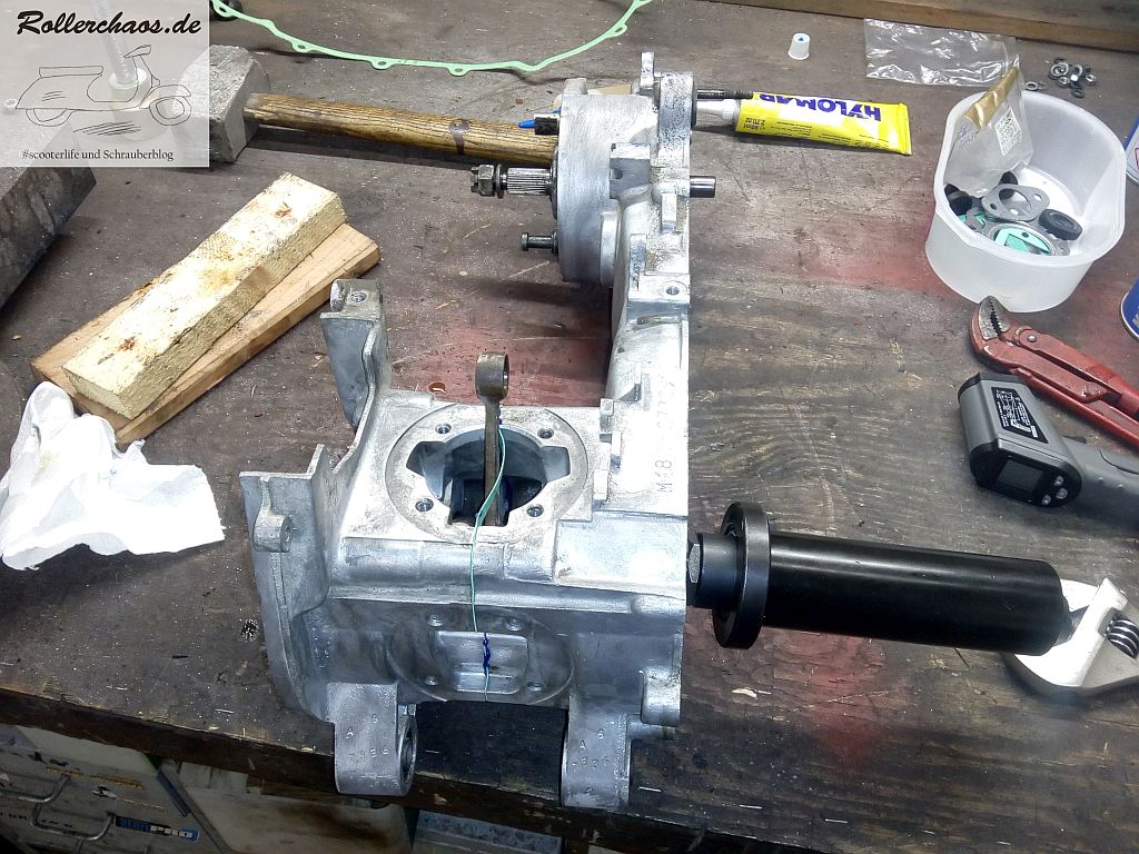 Anschließend ließ sich das Kurbelgehäuse wunderbar zusammenbauen. Es ist immer wieder ein Genuss mit der Einziehvorrichtung zu arbeiten.