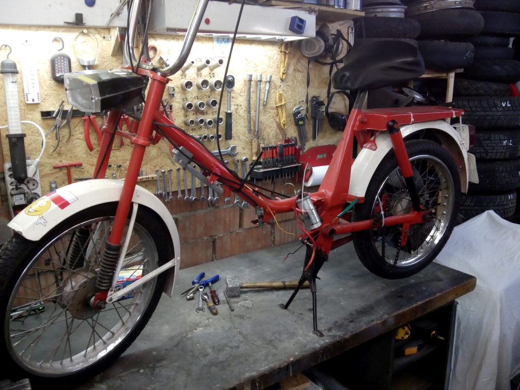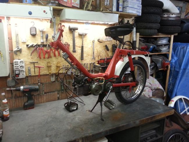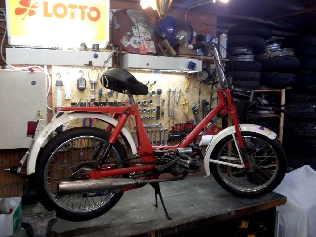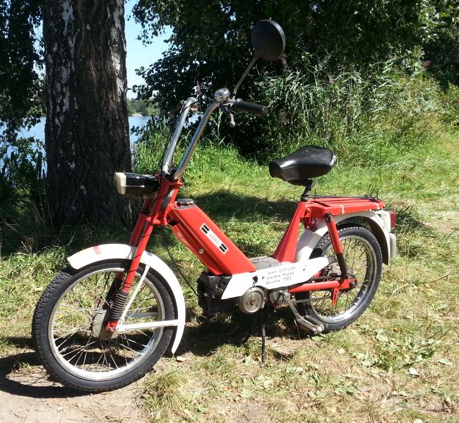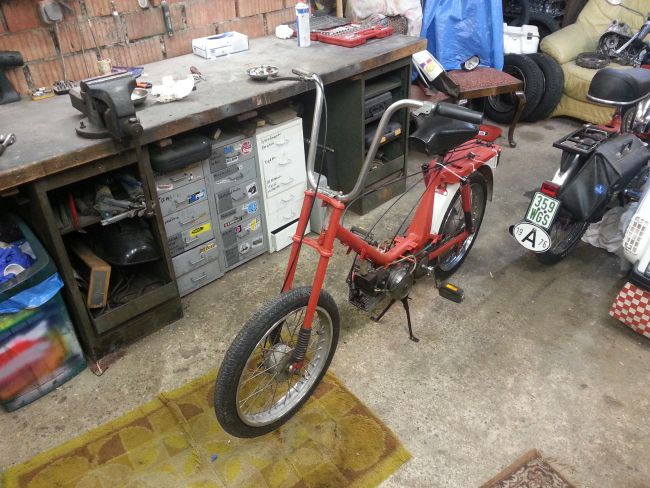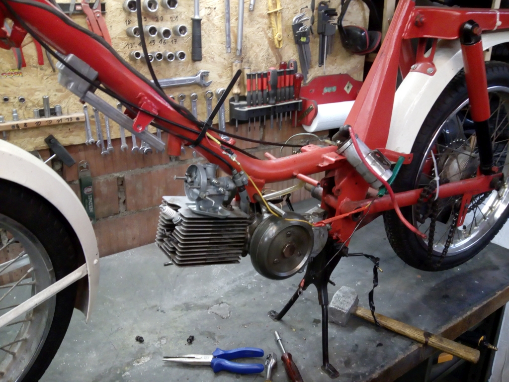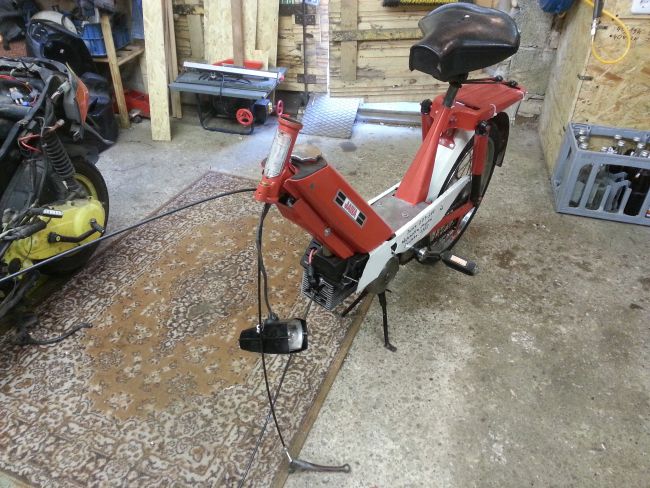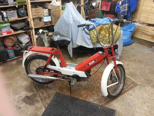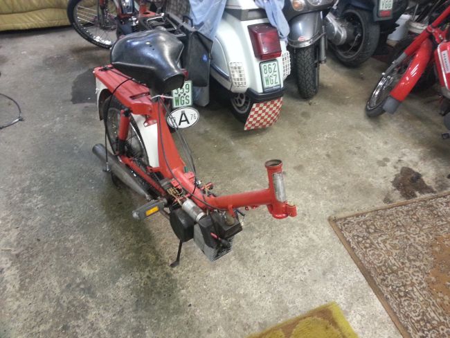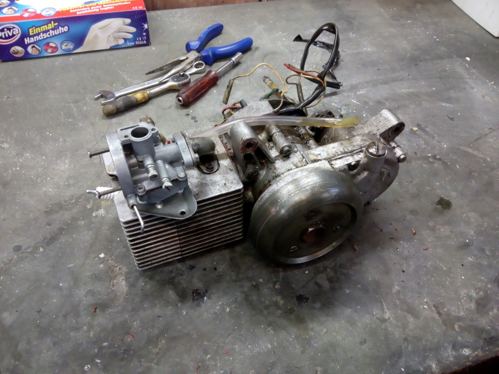 Das Ding hat ja keinen Tacho, daher weiß ja keiner wie viel km es drauf hat. Ich gehe aber davon aus, dass die Kiste zum einen ordentlich KM gesehen und zum anderen auch ziemlich hart rangenommen wurde. Typischerweise waren diese Mopeds im alten Osten ja mehr Arbeitsmaschine als Spaßfahrzeug.
