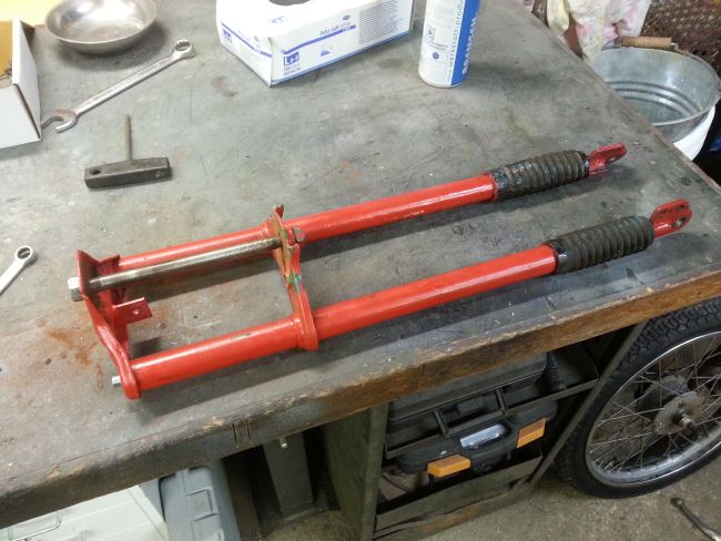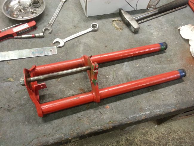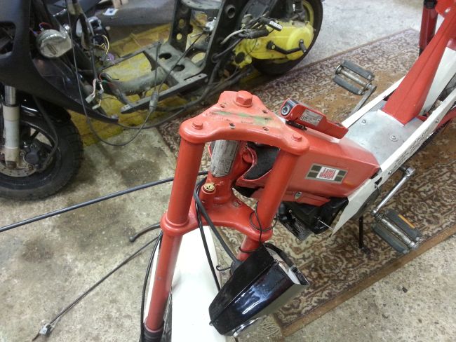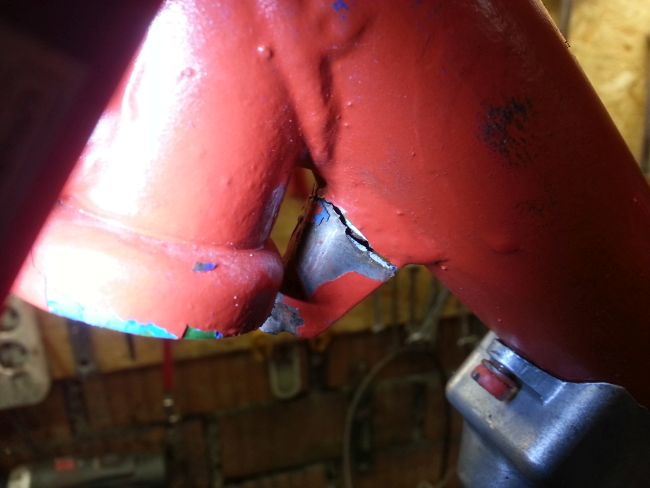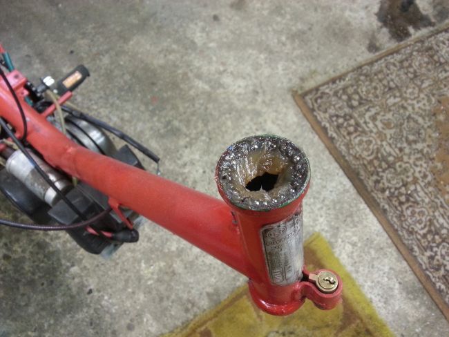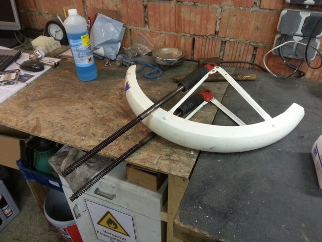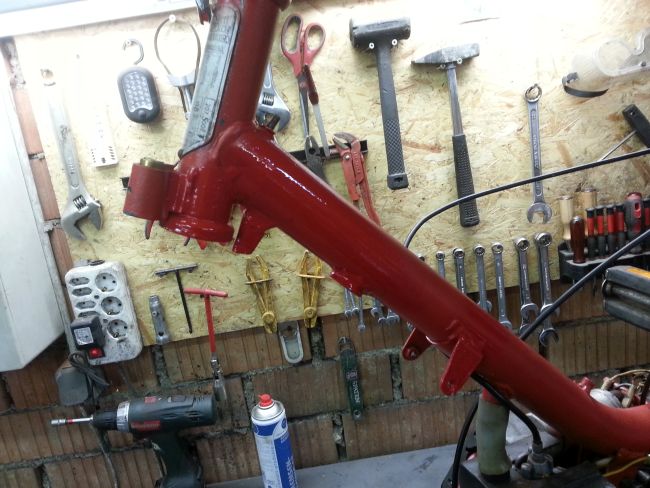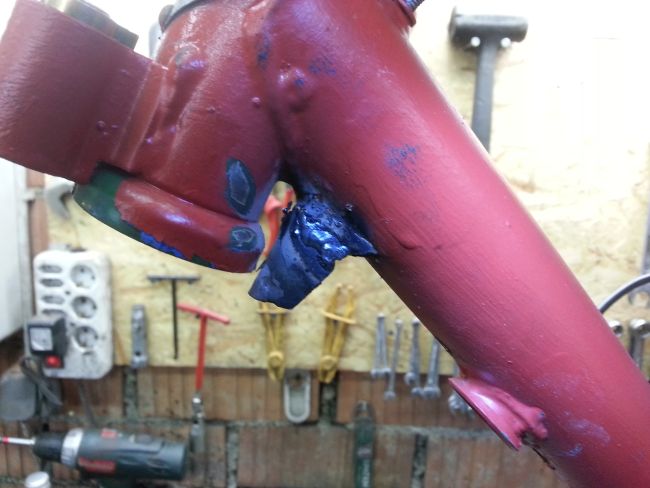 Größtes Problem dürfte der völlig zerstörte Lenkanschlag am Rahmen sein, das wird lustig. Außerdem bin ich mir ziemlich sicher, dass die Gabel einen weggekriegt hat.