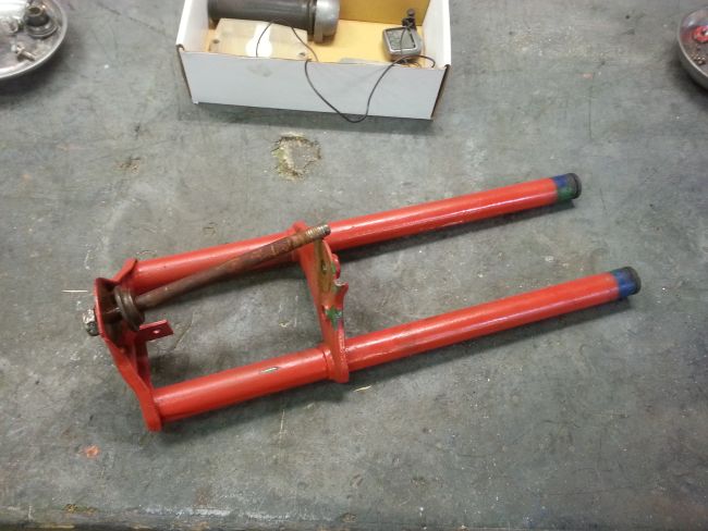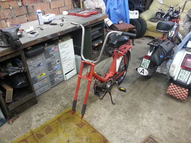 Größtes Problem dürfte der völlig zerstörte Lenkanschlag am Rahmen sein, das wird lustig.