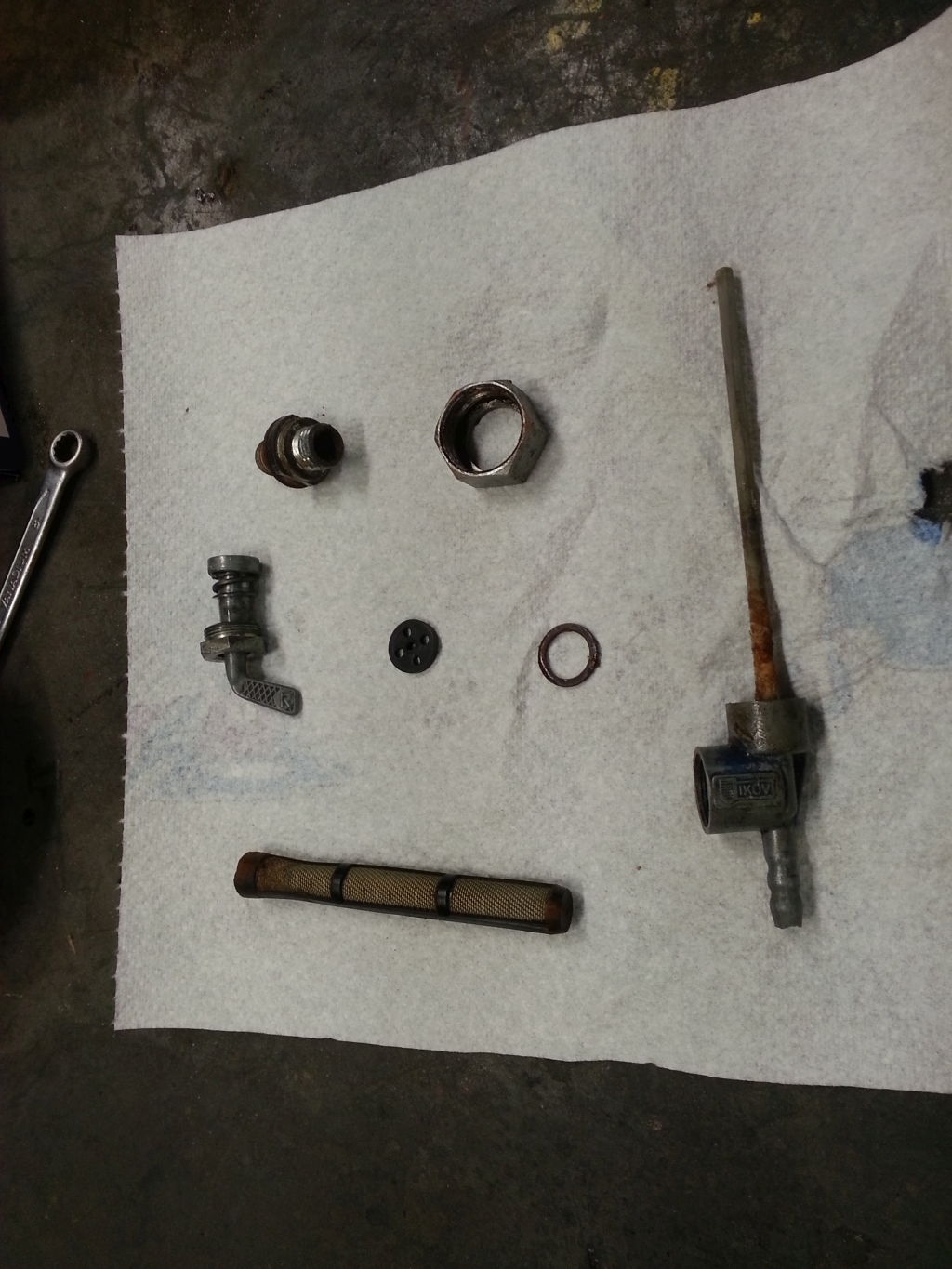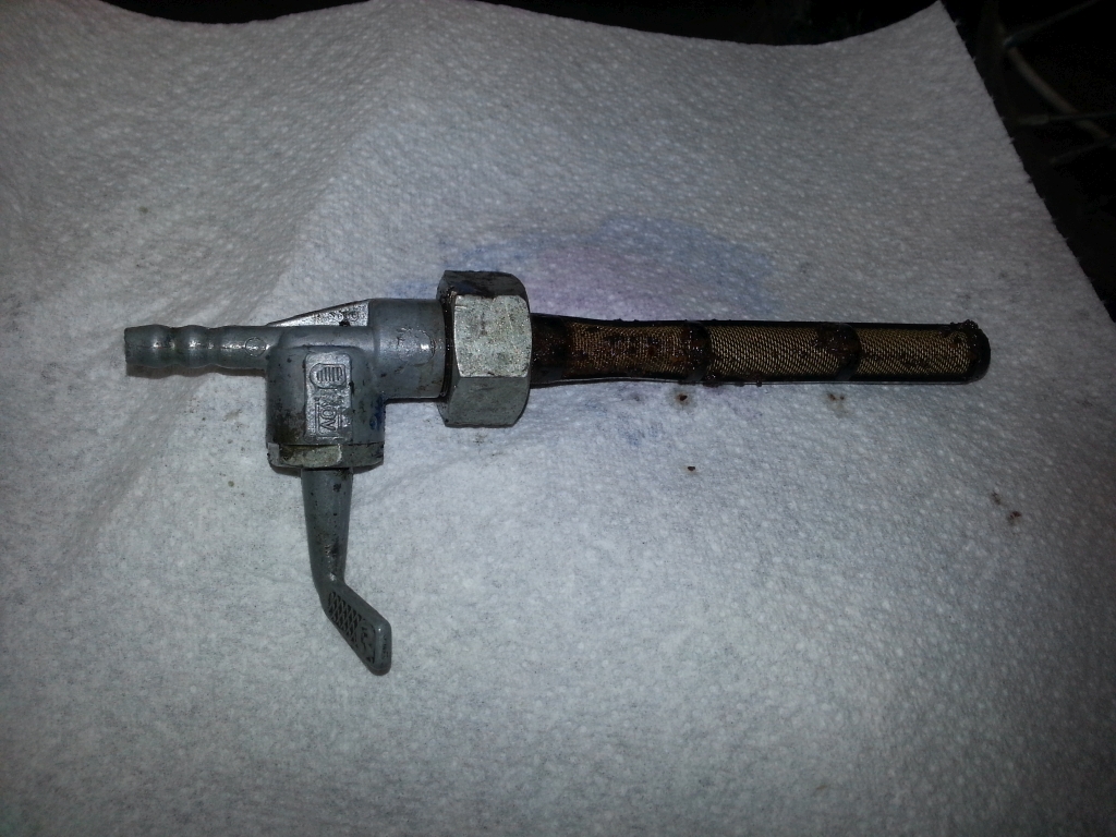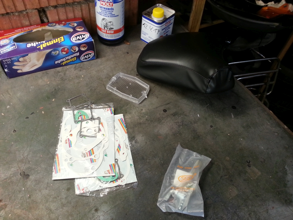 Neben neuen Vergaserdichtungen gibt es auch gleich noch einen neuen Benzinhahn, denn wirklich gut das ist das eingebaute Altteil nicht mehr. Bis die Neuteile kommen, bleibt jedenfalls noch Zeit den Vergaser gründlich zu reinigen.