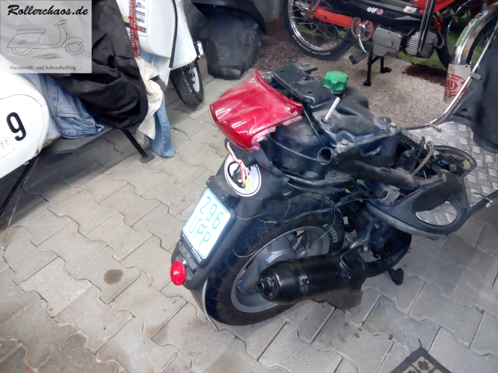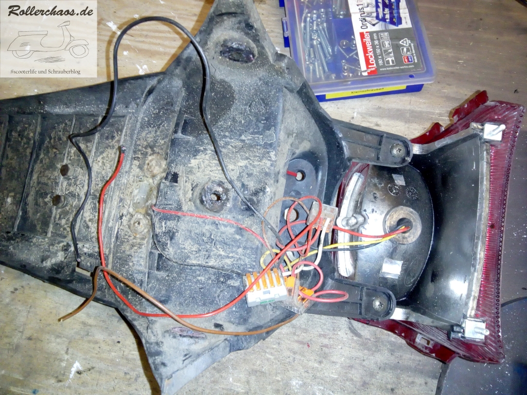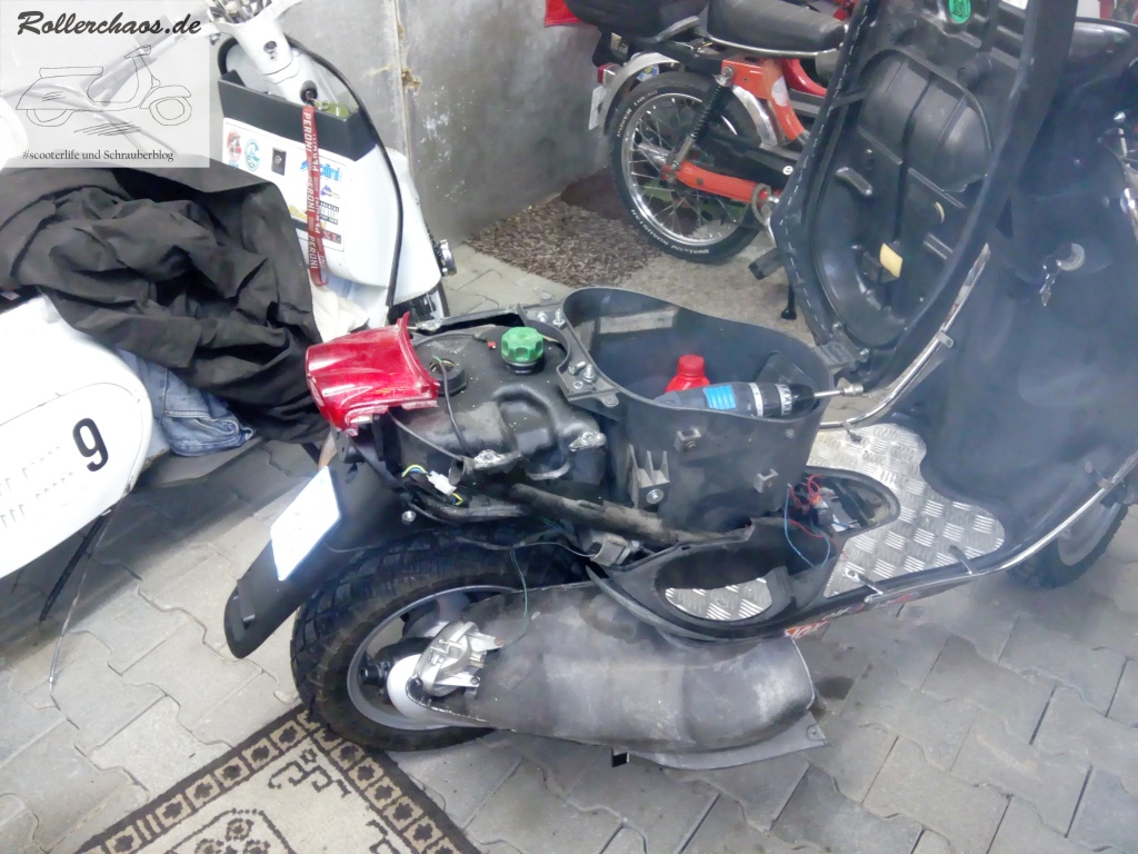 Provisorisch angesteckt war dann auch ein erster Funktionstest möglich. Dieser war von Erfolg gekrönt, Zeit das Rollerheck wieder anzubauen.