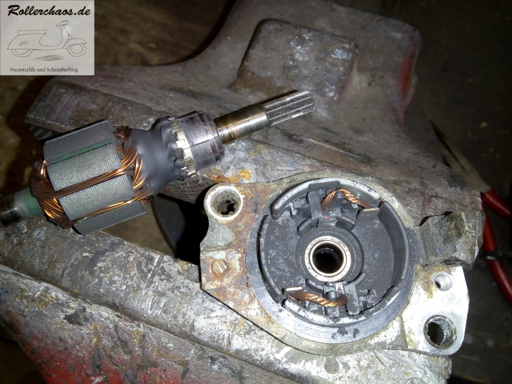 Ich habe kurz darüber nachgedacht den Motor trotzdem einzuhängen, das aber verworfen weil es auf der Werkbank deutlich einfacher ist den Anlasser einzubauen. Außerdem eilt die Sache ja nicht.