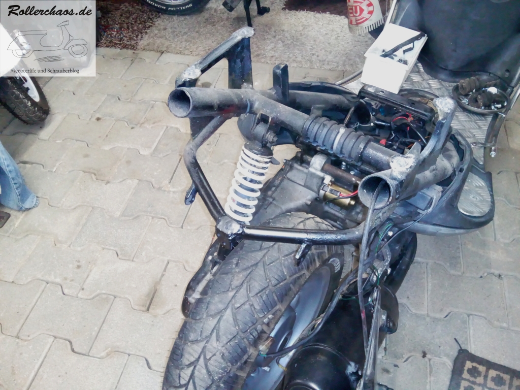 Vielleicht finde ich auch noch einen weg, den Roller ohne extremen Shimmy fahren zu können. Das habe ich auch für den Winter auf der Agenda, glaube aber nicht, dass es da eine Lösung gibt. Das Chassis ist einfach zu krumm.