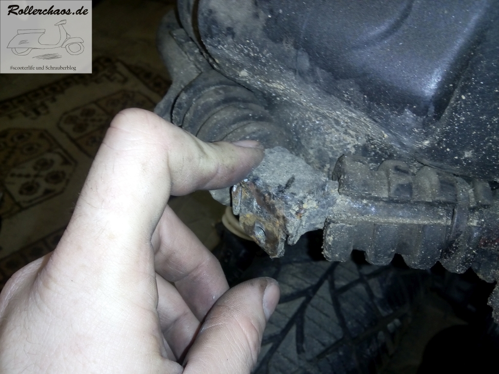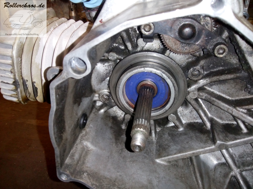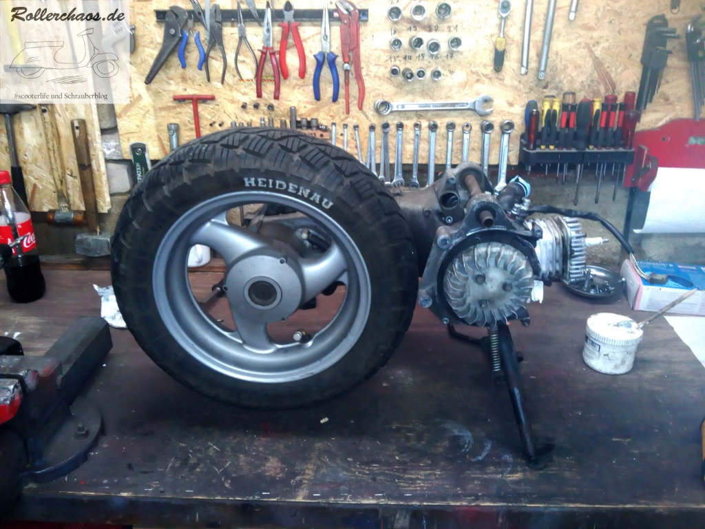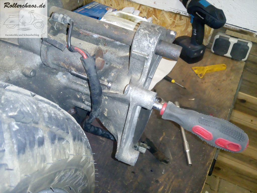 Angefangen habe ich damit auf der Antriebsseite. Schon weil hier sonst keine Arbeit auf mich wartet, seit der letzten Überholung bin ich den Roller ja nicht wirklich viel gefahren, entsprechend gut ist der Antrieb noch beieinander.