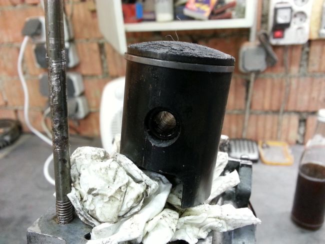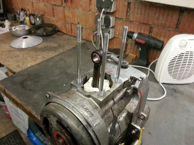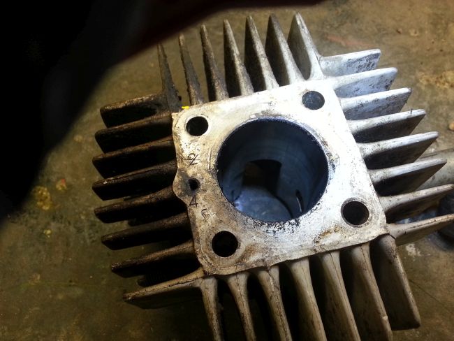 Wobei unser Motorenmann meinte, man könne den Zylinder vermutlich ausbohren und eine trockene Buchse einziehen. Das ist aber wirklich die allerletzte Option, denn die Kosten dafür sind selbst beim letzten existierenden Exemplar ein bisschen sehr heftig. Er meinte da müsse ich um die 1.000€ rechnen und das ist schon der Freundschaftspreis.