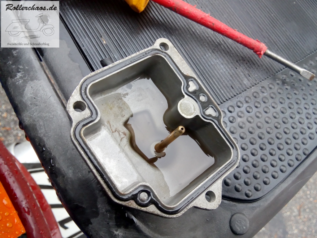 Ein ziemlich beachtlicher Teilehaufen und genug um sich einige Zeit mit dem Roller zu beschäftigen. Angefangen habe ich mit dem Hauptproblem, dem Benzinhahn.