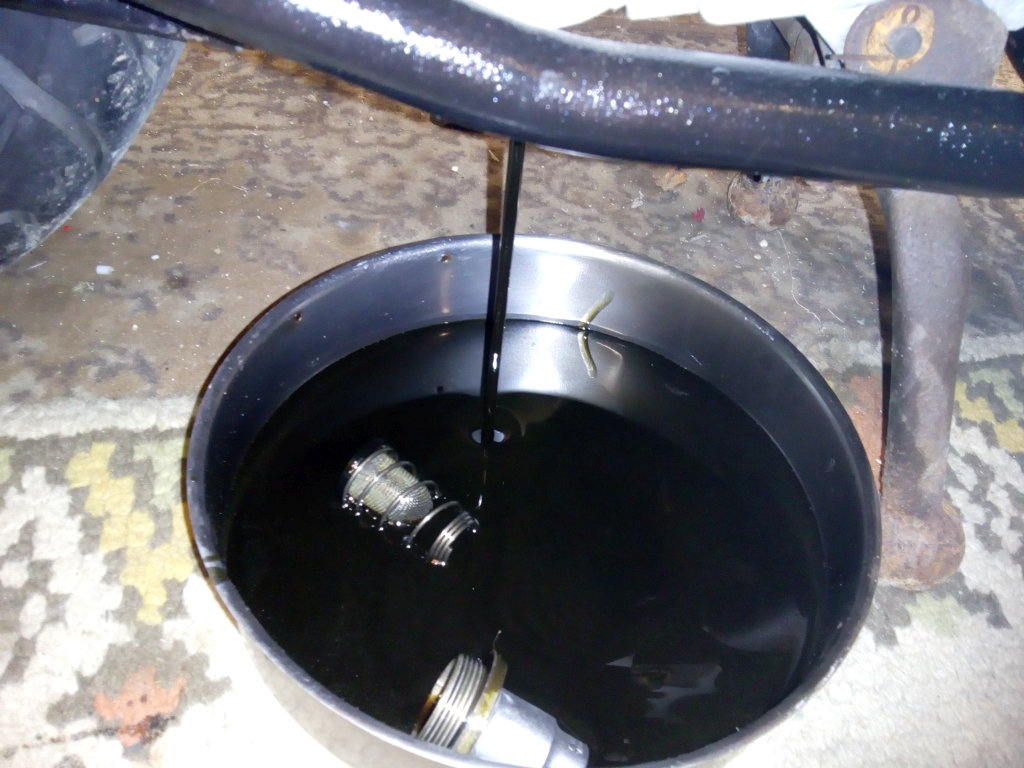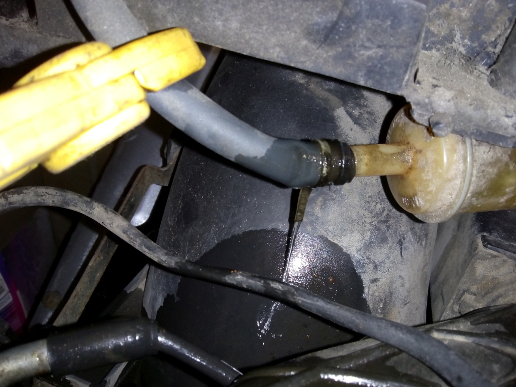 Es kommt auf dem Foto nicht so rüber, aber der Inhalt des Ausgleichsbehälters hatte die Farbe von Teer und die Konsistenz von Hafergrütze. Dass das Ding überhaupt noch bremste war eigentlich ein kleines Wunder.