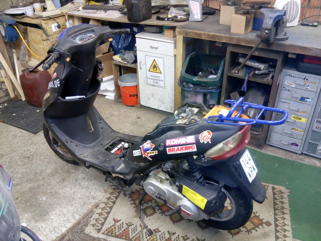 Einige von euch, also diejenigen die auch meinen Blog lesen, haben es vllt. schon gesehen: Mir ist mal wieder ein Chinaroller zugelaufen. Genauer handelt es sich um die Karre von Thums Exfrau, den ich schon im September in Freiberg versucht habe zu Leben zu erwecken. Damals war der Erfolg durchwachsen, immerhin lief die Karre lange genug für eine kurze Runde und ein paar lustige Erlebnisse in Freiberg. Aber jetzt steht der Haufen bei mir und soll zu mehr werden als nur einem kurzlebigen Feuerwerk.