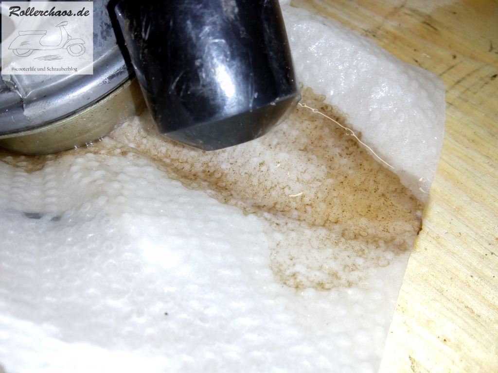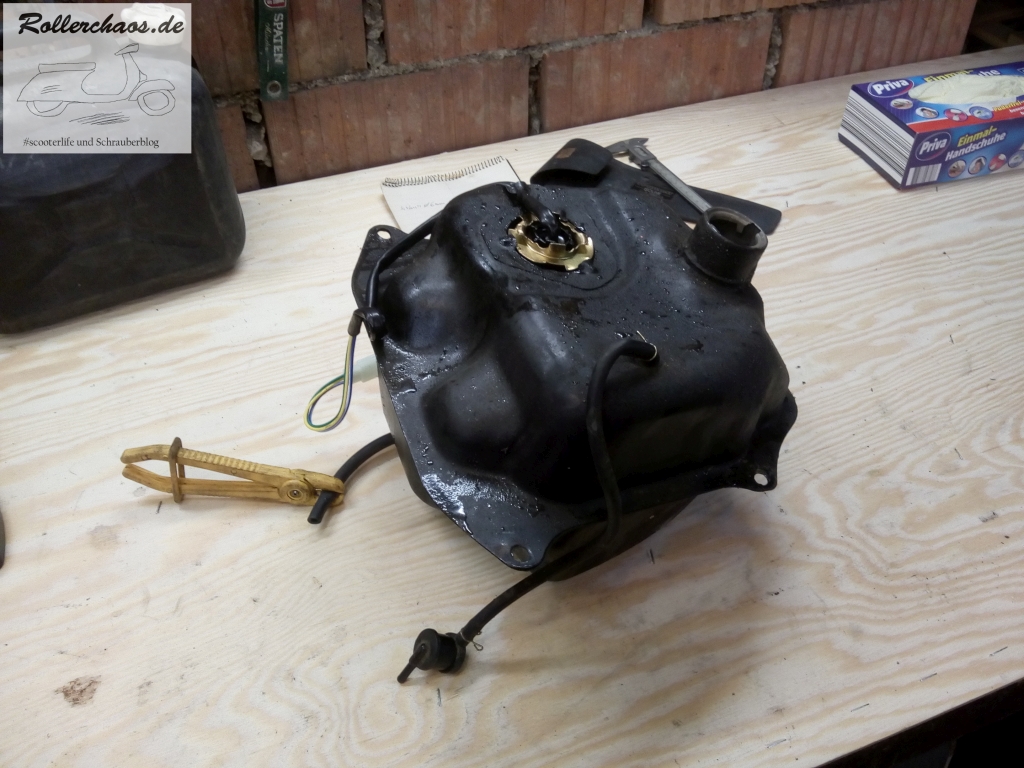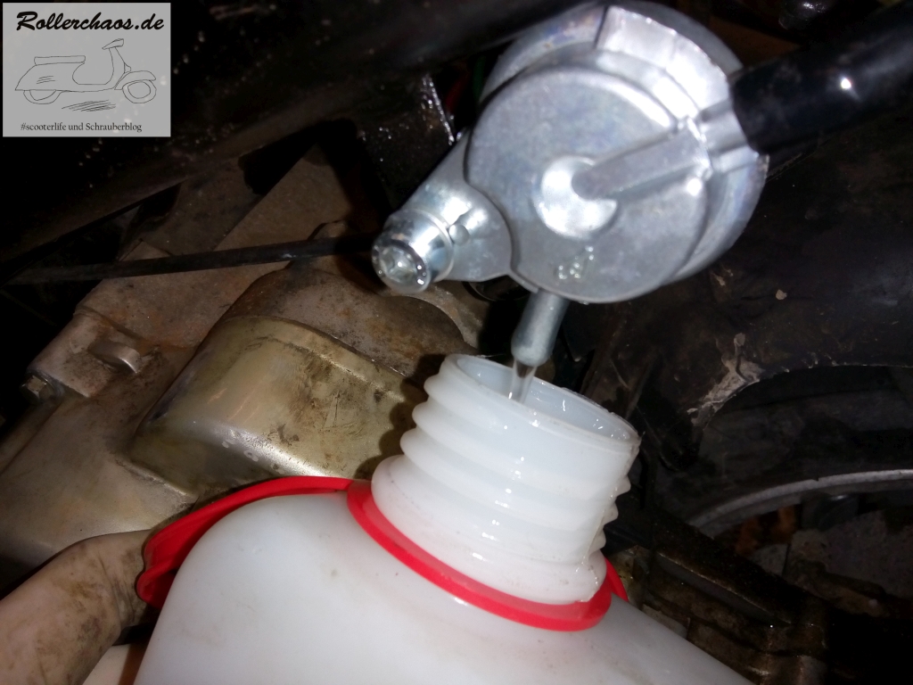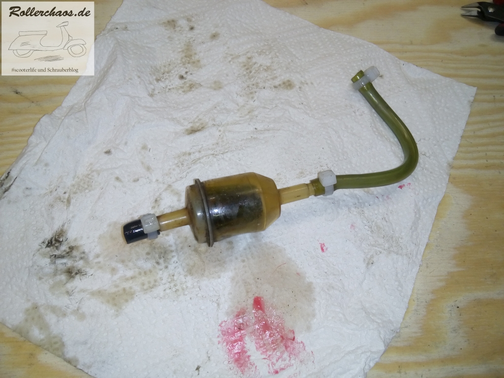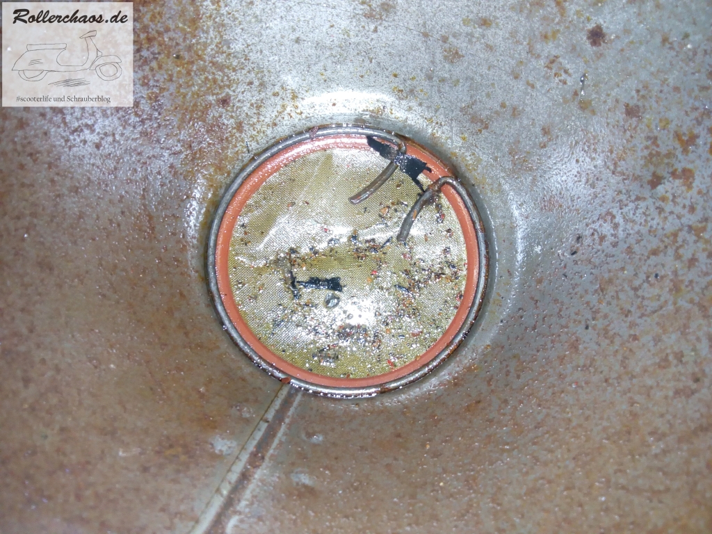 Der nächste Schritt war dann, das Benzin in einen Kanister umfüllen. Ich habe eine guten, alten Trichter mit Filtersieb, dieses war vor dem Umfüllen sauber ...